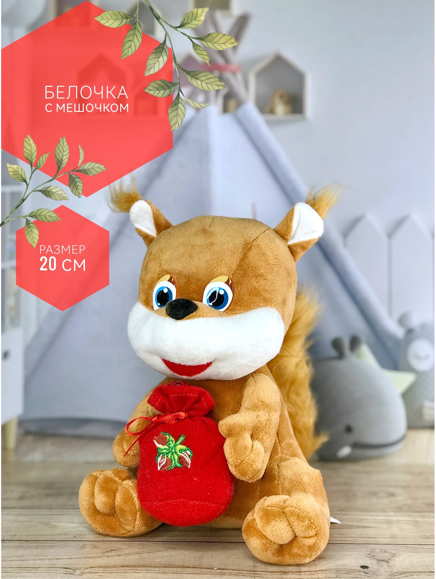 Купить Мягкая игрушка Белка с красным мешочком 20 см