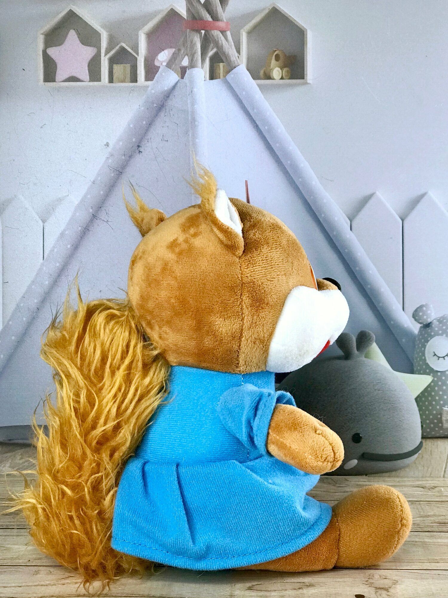 Мягкая игрушка Белка, Белочка в сарафане 20 см коричнево-голубая интересное: