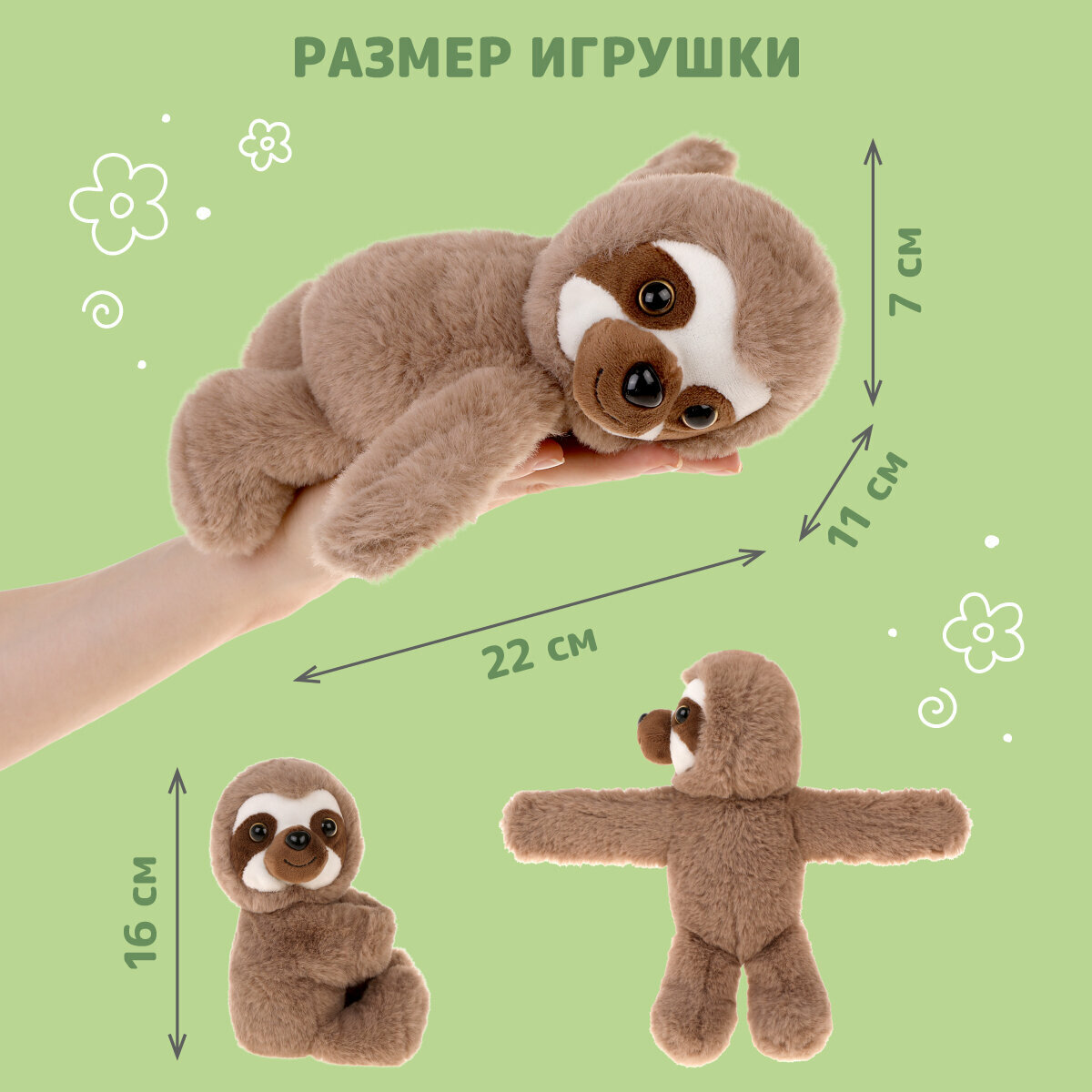Игрушка-браслет Fluffy Family "Ленивец" 16см для детей, коричневый интересное: