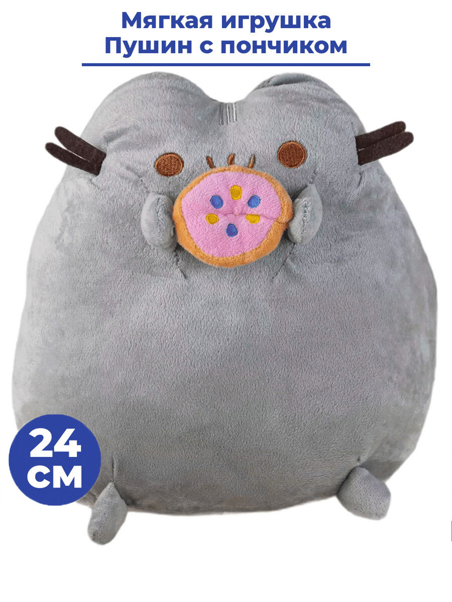 Купить Мягкая игрушка кот Пушин с пончиком Pusheen 24 см