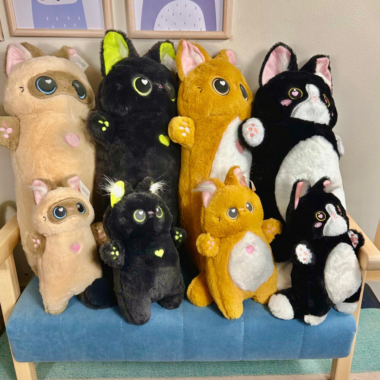 Мягкая игрушка аниме котик черный с белым животиком 50 см