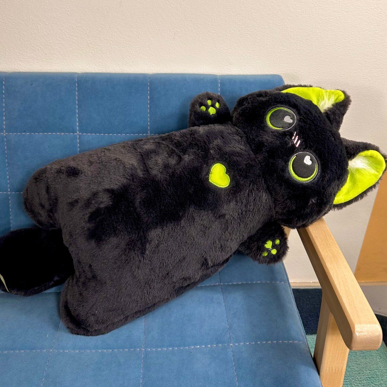 Мягкая игрушка аниме котик черный с салатовыми ушками 50 см интересное: