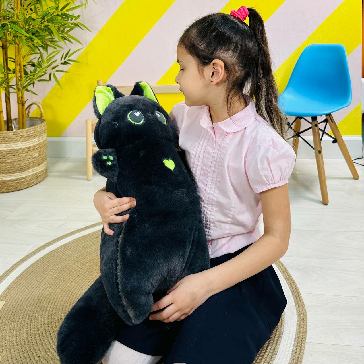 Купить Мягкая игрушка аниме котик черный с салатовыми ушками 50 см