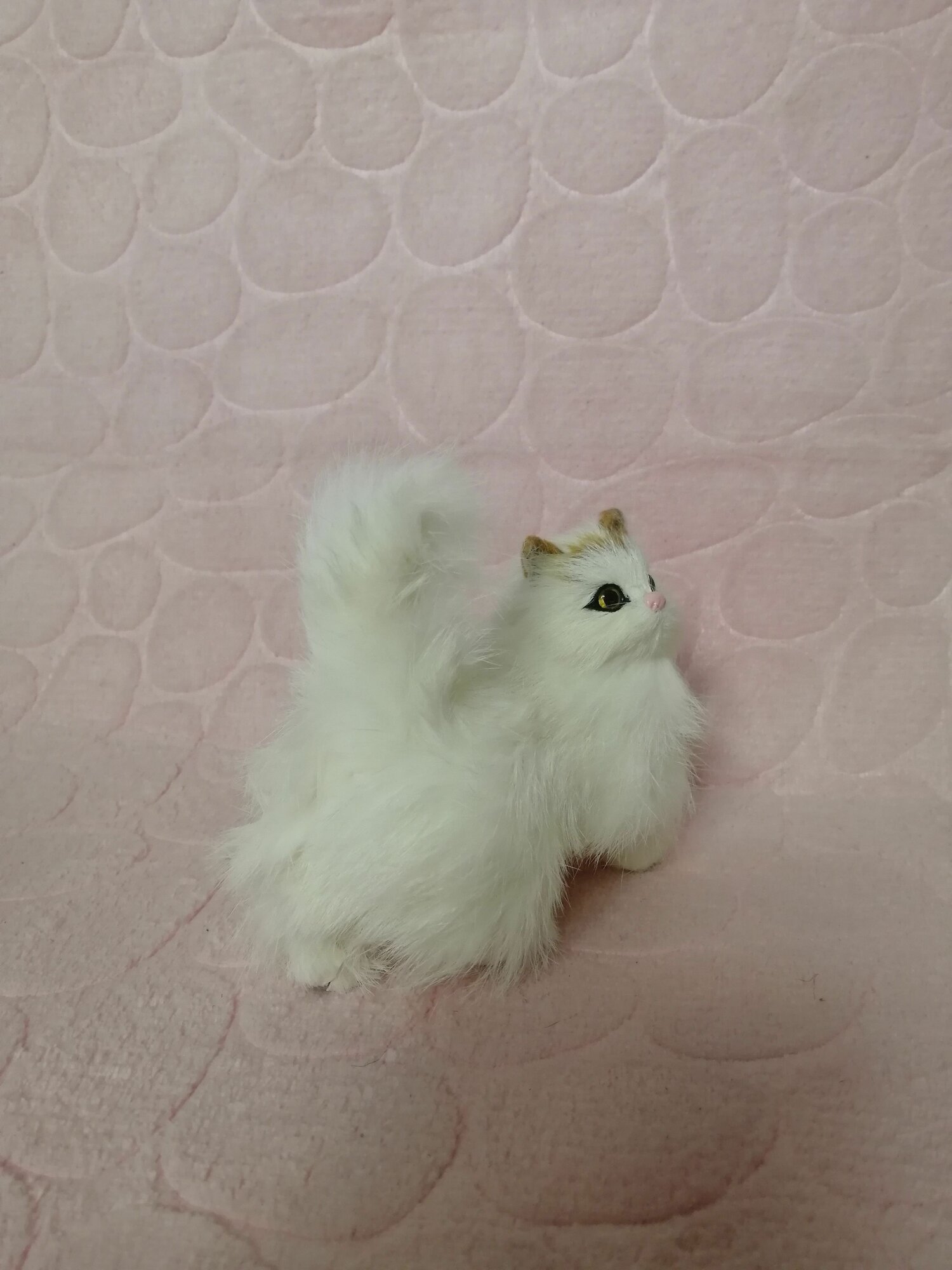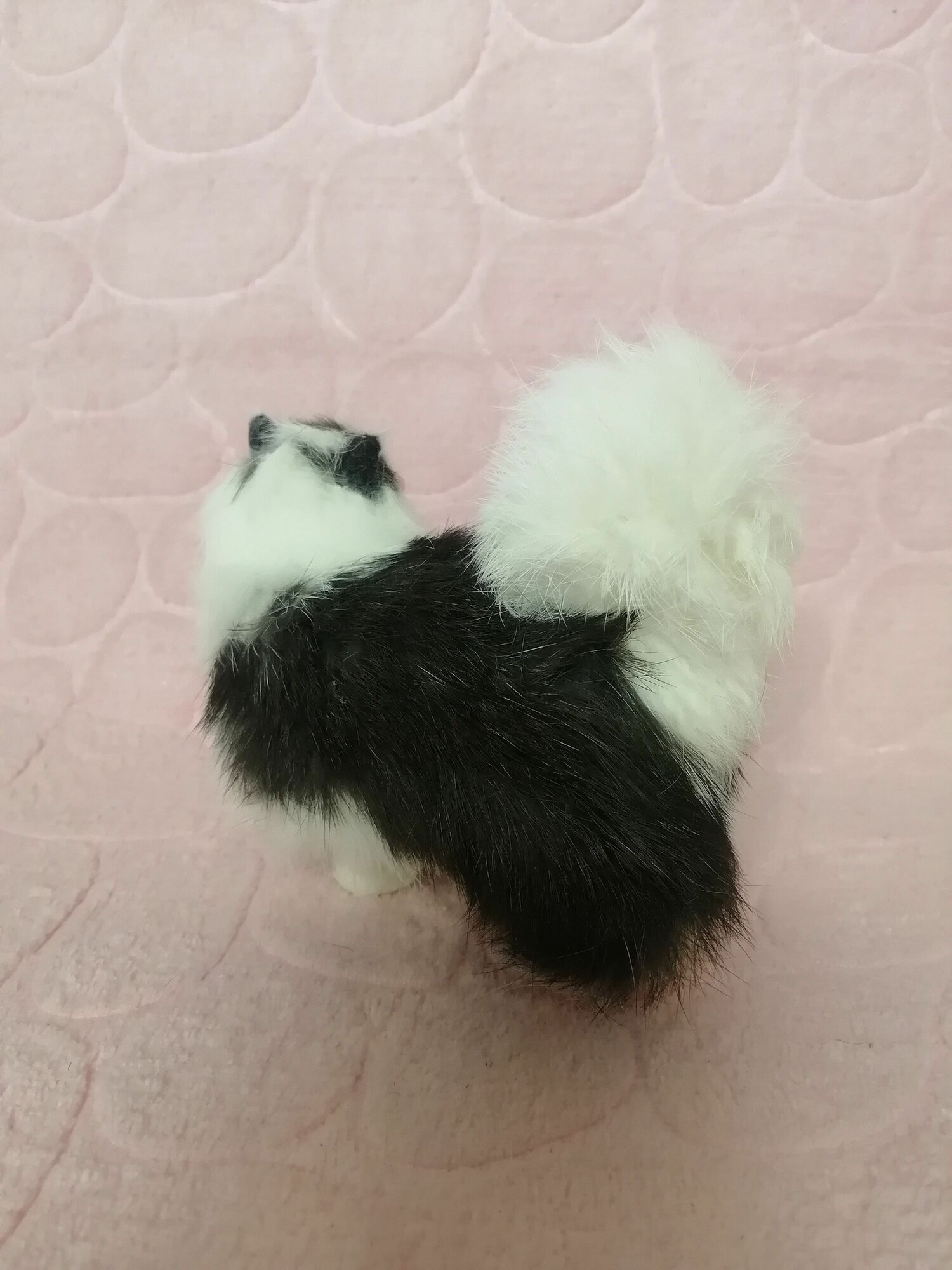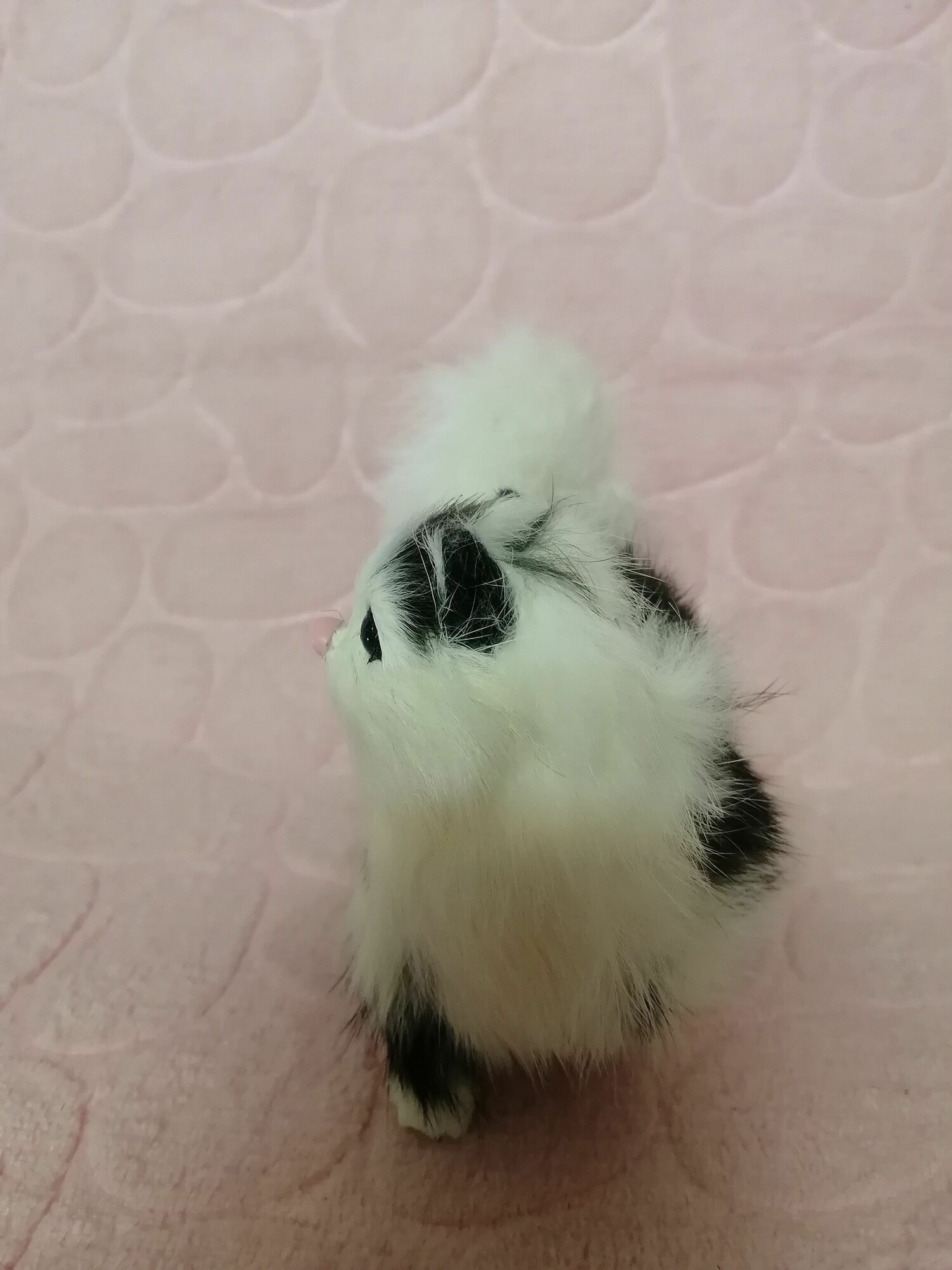 Купить Мягкая игрушка "Котёнок", натуральный мех, высота 11см, белый/чёрный, для детей 3-5 лет