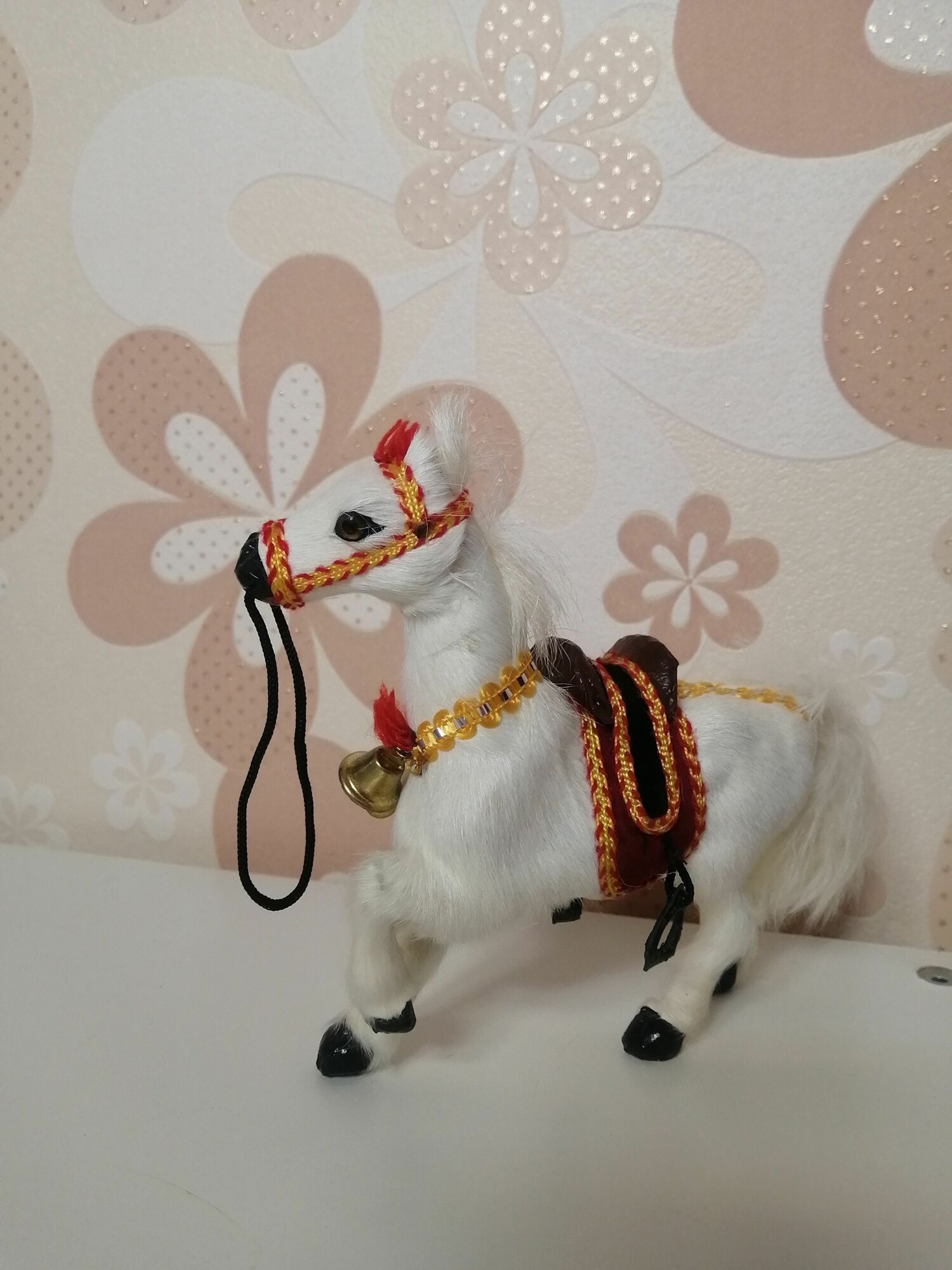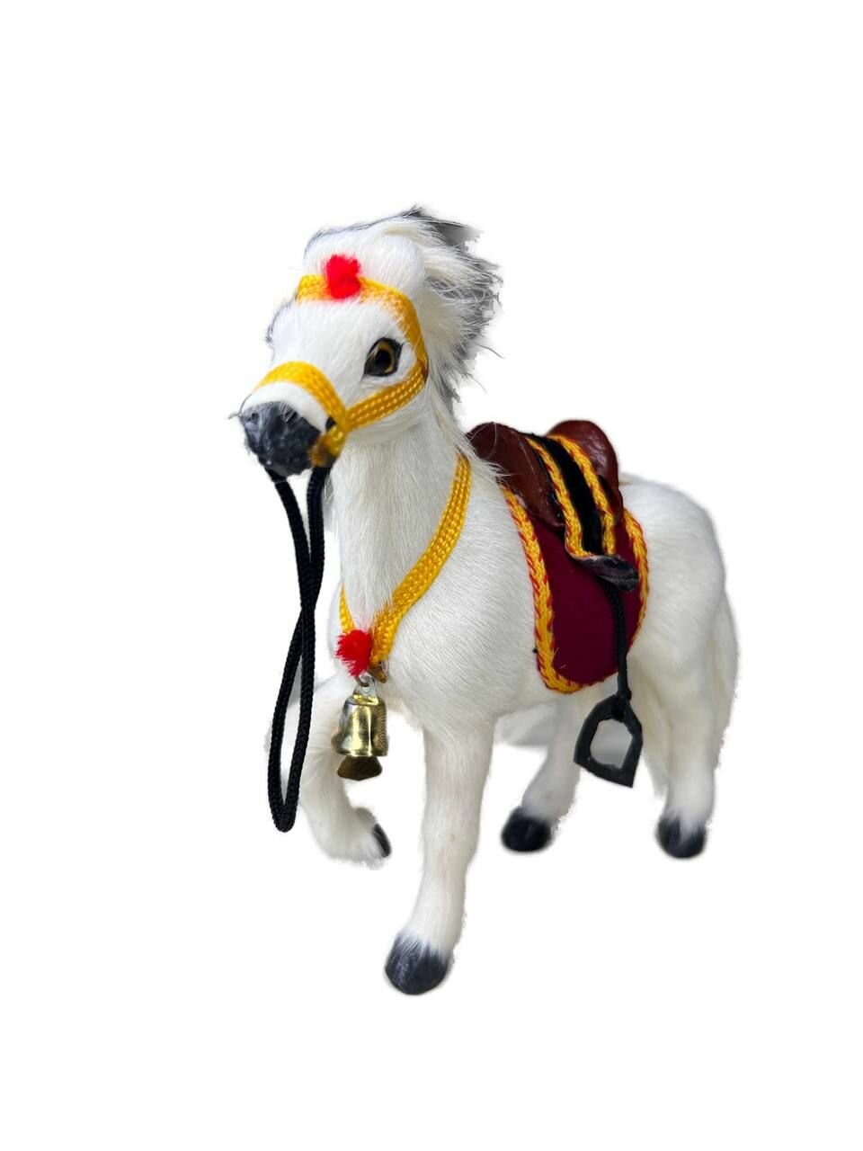 Фигурка "Конь", ручной работы, натуральный мех, бежевая, 12см