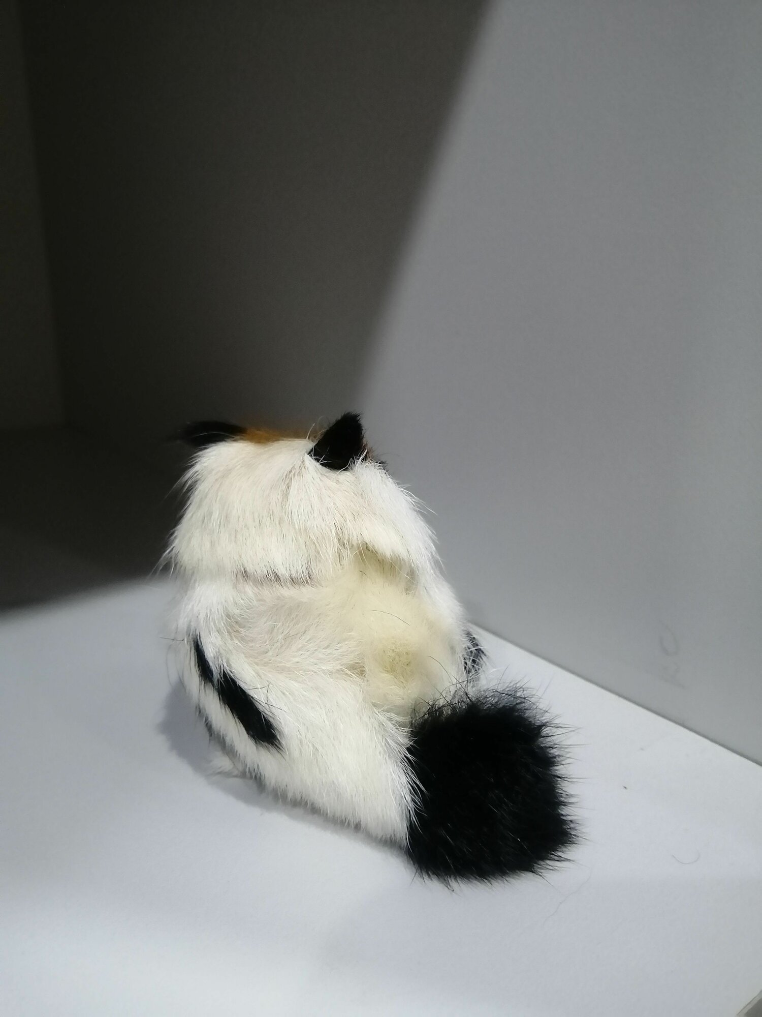 Мягкая игрушка "Котёнок", натуральный мех, высота 11см, белый/чёрный, для детей 3-5 лет