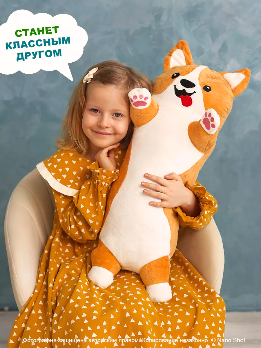 Мягкая игрушка-батон-подушка Веселая Корги, 70 см интересное: