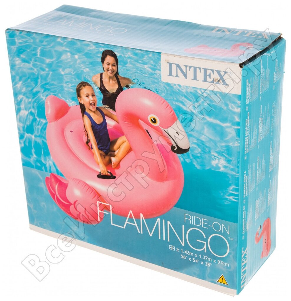Intex 57558 Надувной розовый матрас-плот для плавания с ручками 142х137х97см "Фламинго" от 3 лет интересное: