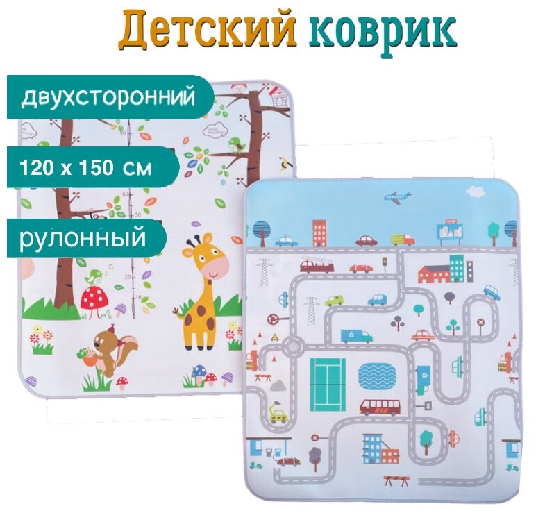 Купить Коврик детский игровой двусторонний рулонный Meitoku "Городок/Жираф" 120x150x0,5 см