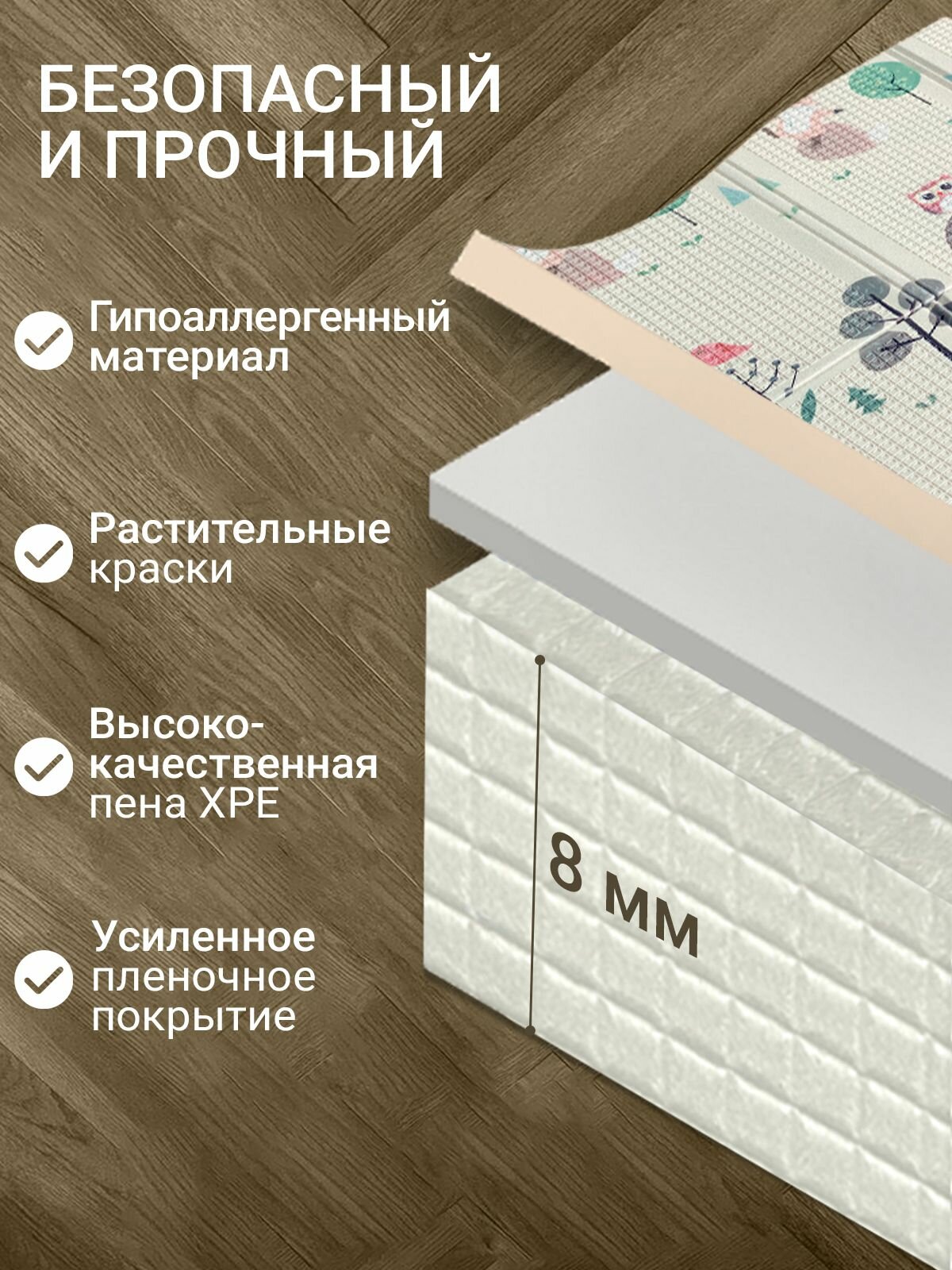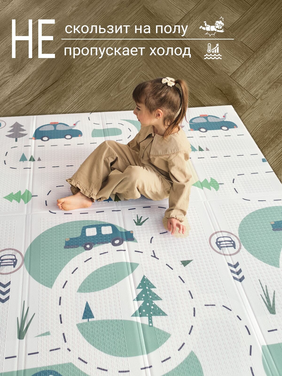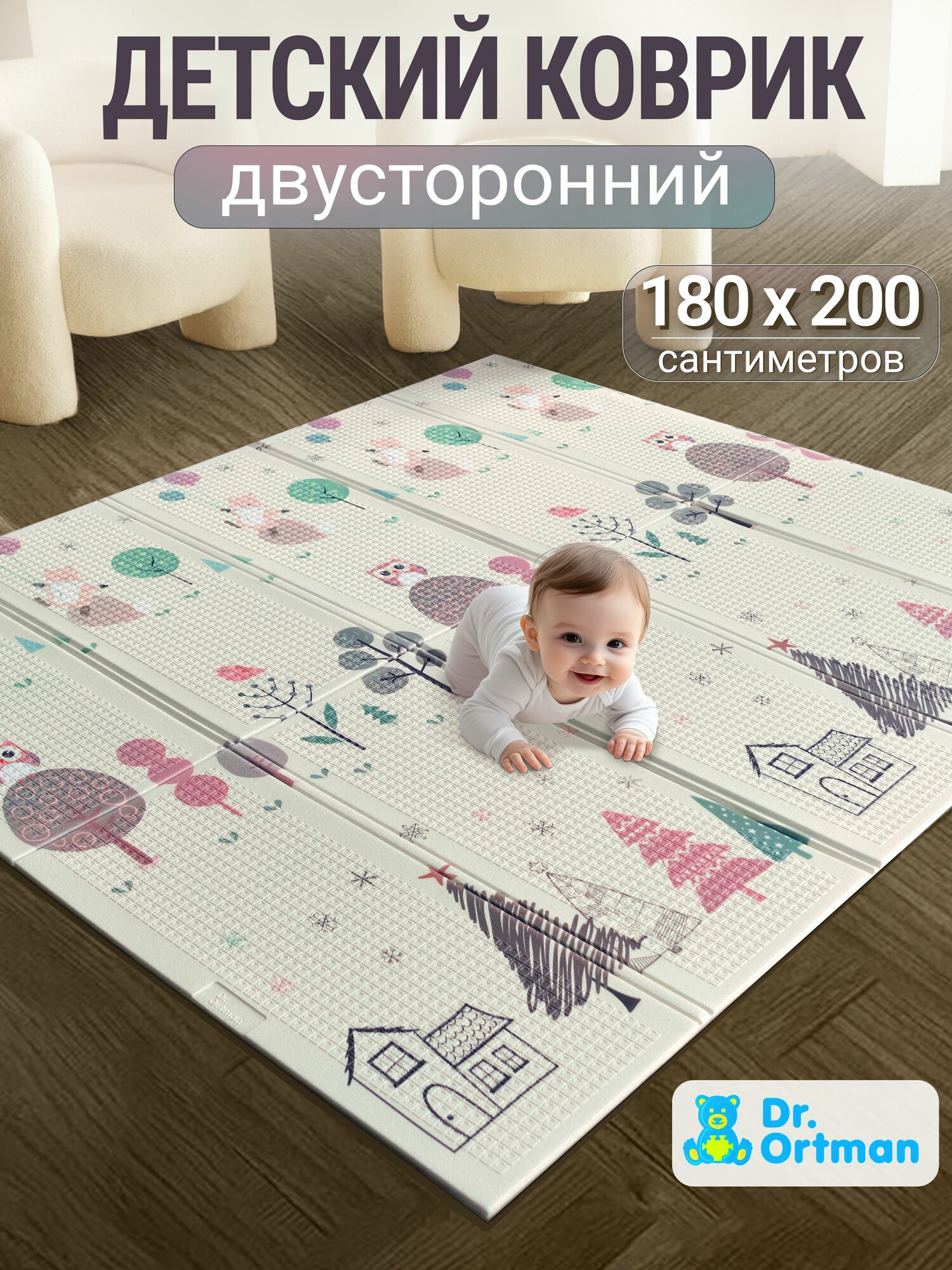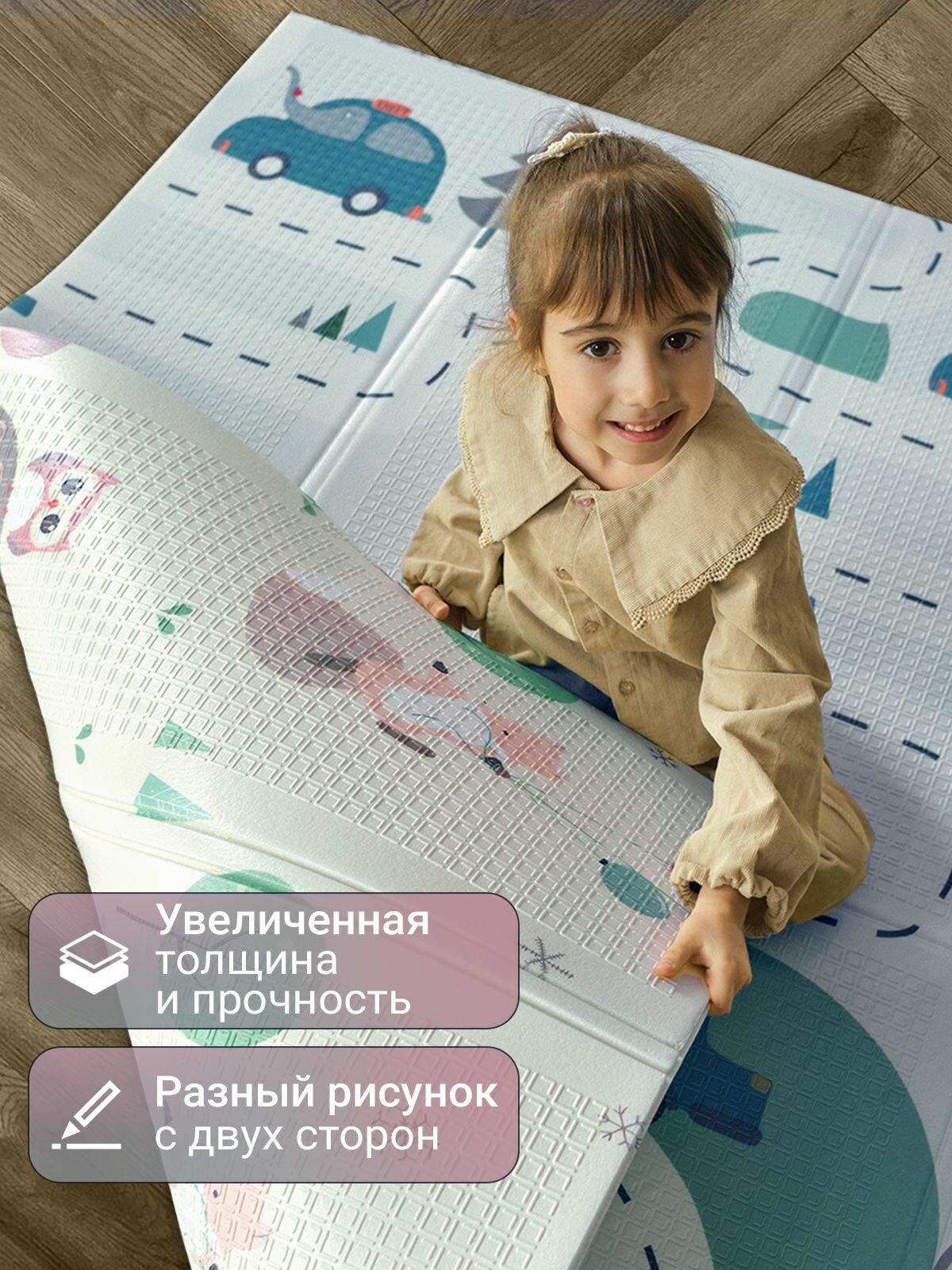 Коврик детский для ползания 180х200 развивающий игровой двухсторонний на пол для новорожденных термоковрик складной интересное: