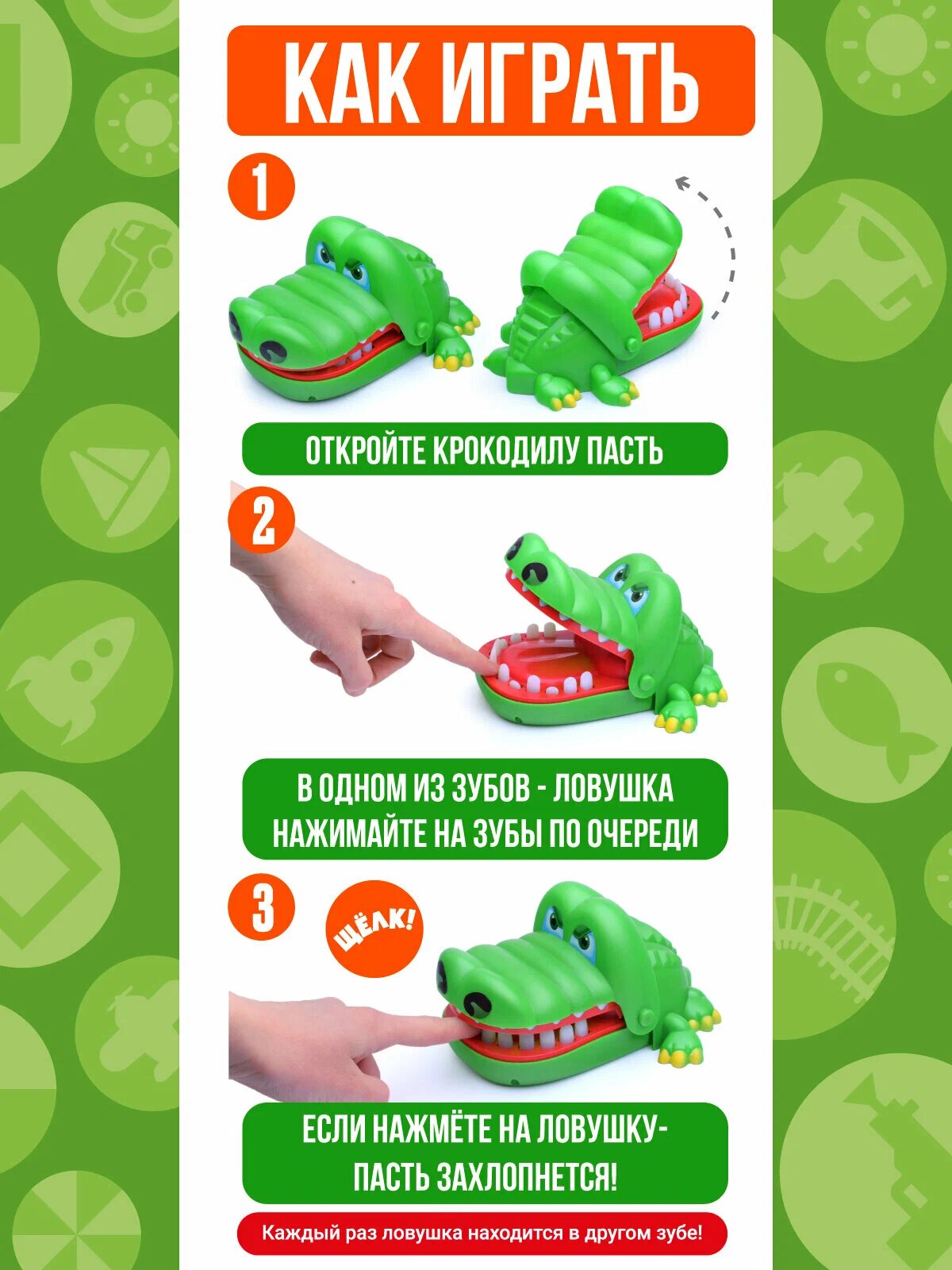 Ниже Вы можете прочитать отзывы на Весёлая настольная игра Крокодил дантист на реакцию и ловкость для детей от 3х лет, ознакомится с подробными характеристиками, посмотреть интересные обзоры и фотографии на Весёлая настольная игра Крокодил дантист на реакцию и ловкость для детей от 3х лет.