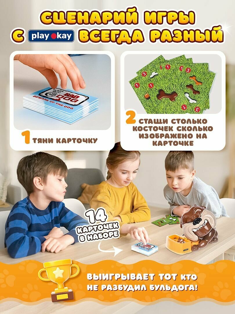 Настольныя игра Play Okay собака зубастик, для детей и всей семьи, для компании, питание от батареек интересное: