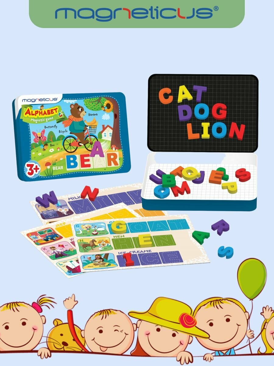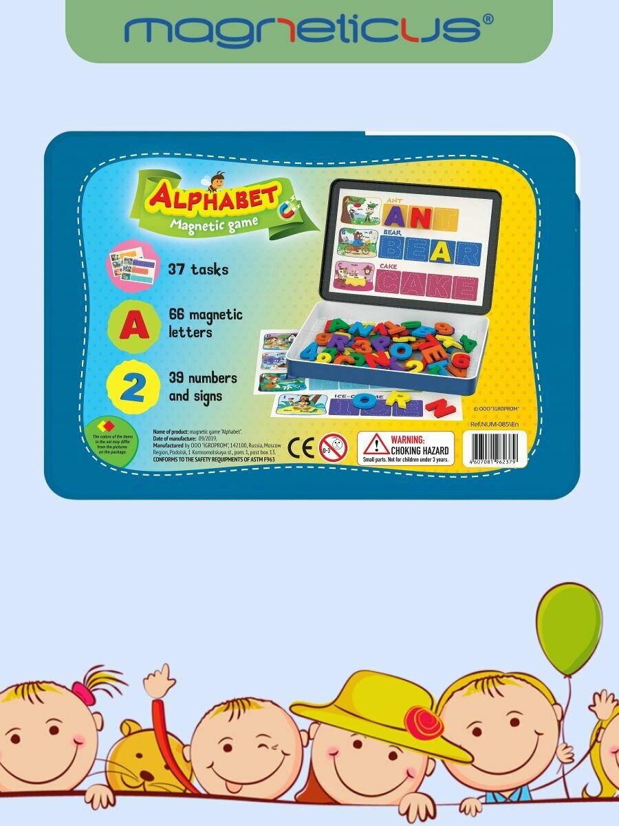 Купить Обучающая магнитная игра-мозаика от Magneticus "Алфавит" на английском языке, 105 элементов, 37 заданий, от 3 лет