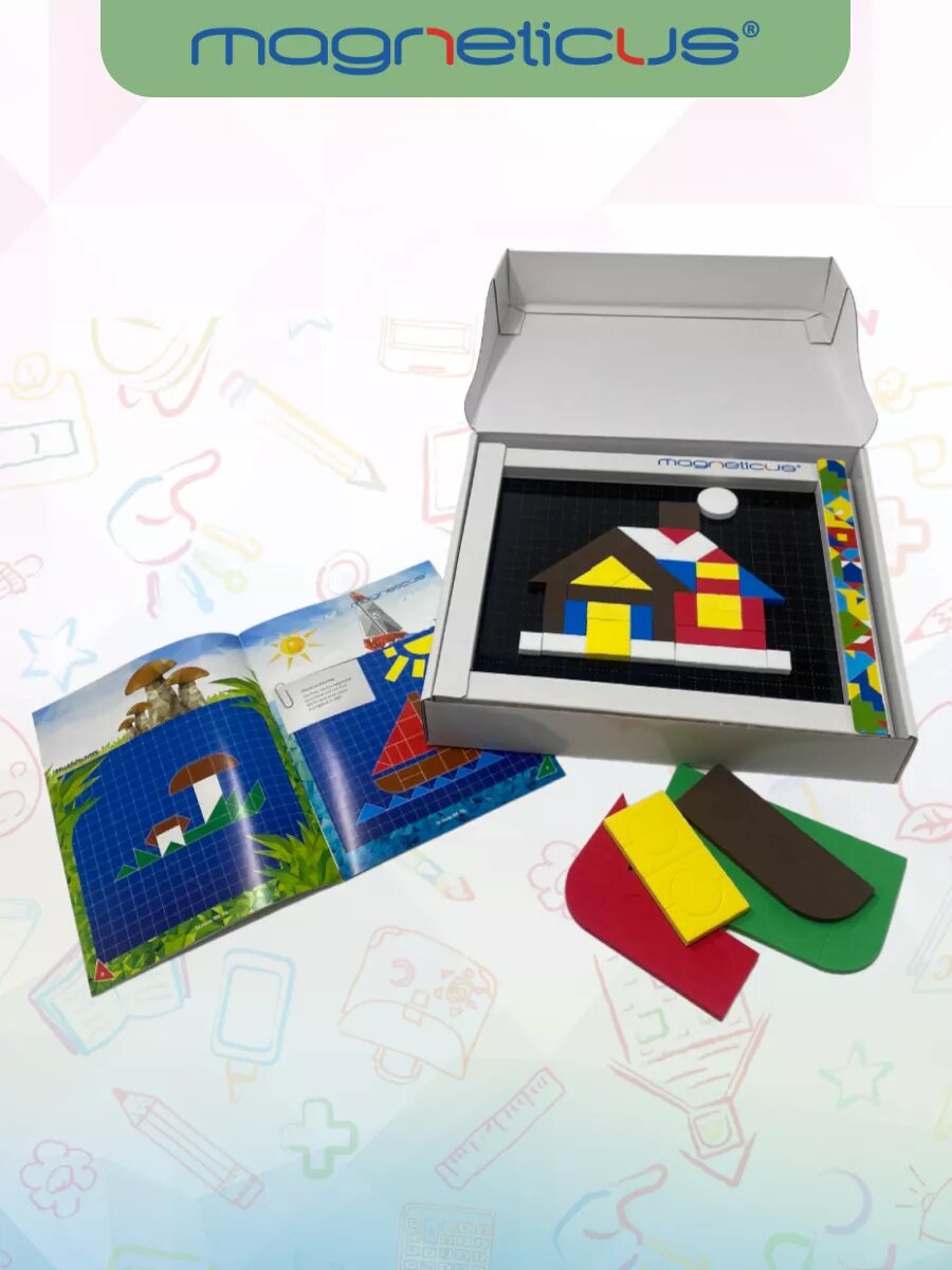 Обучающая магнитная игра-мозаика от Magneticus "Стройка" на английском языке, 21 магнитный элемент, 4 этюда-задания
