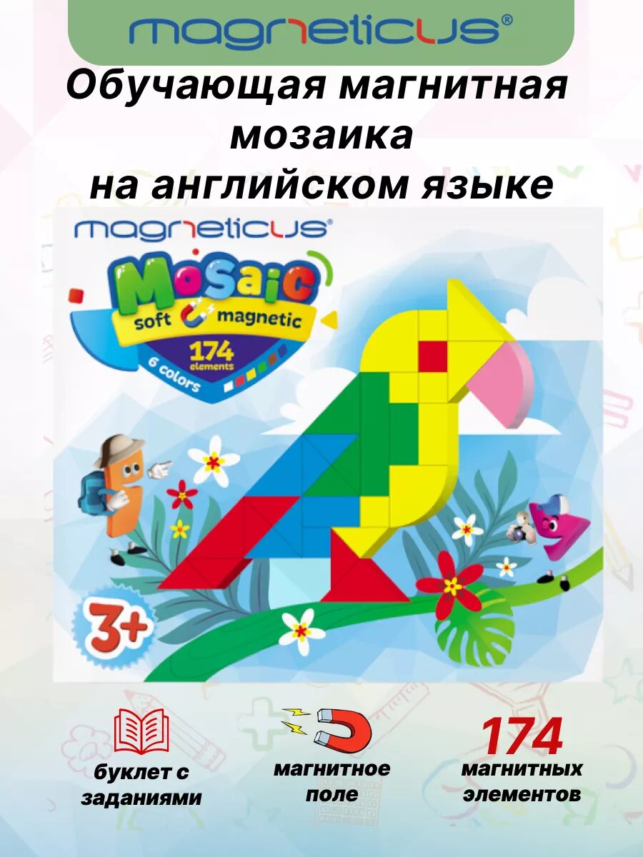 Купить Магнитная мозаика Magneticus "Животные", обучающая, на английском языке, 174 детали