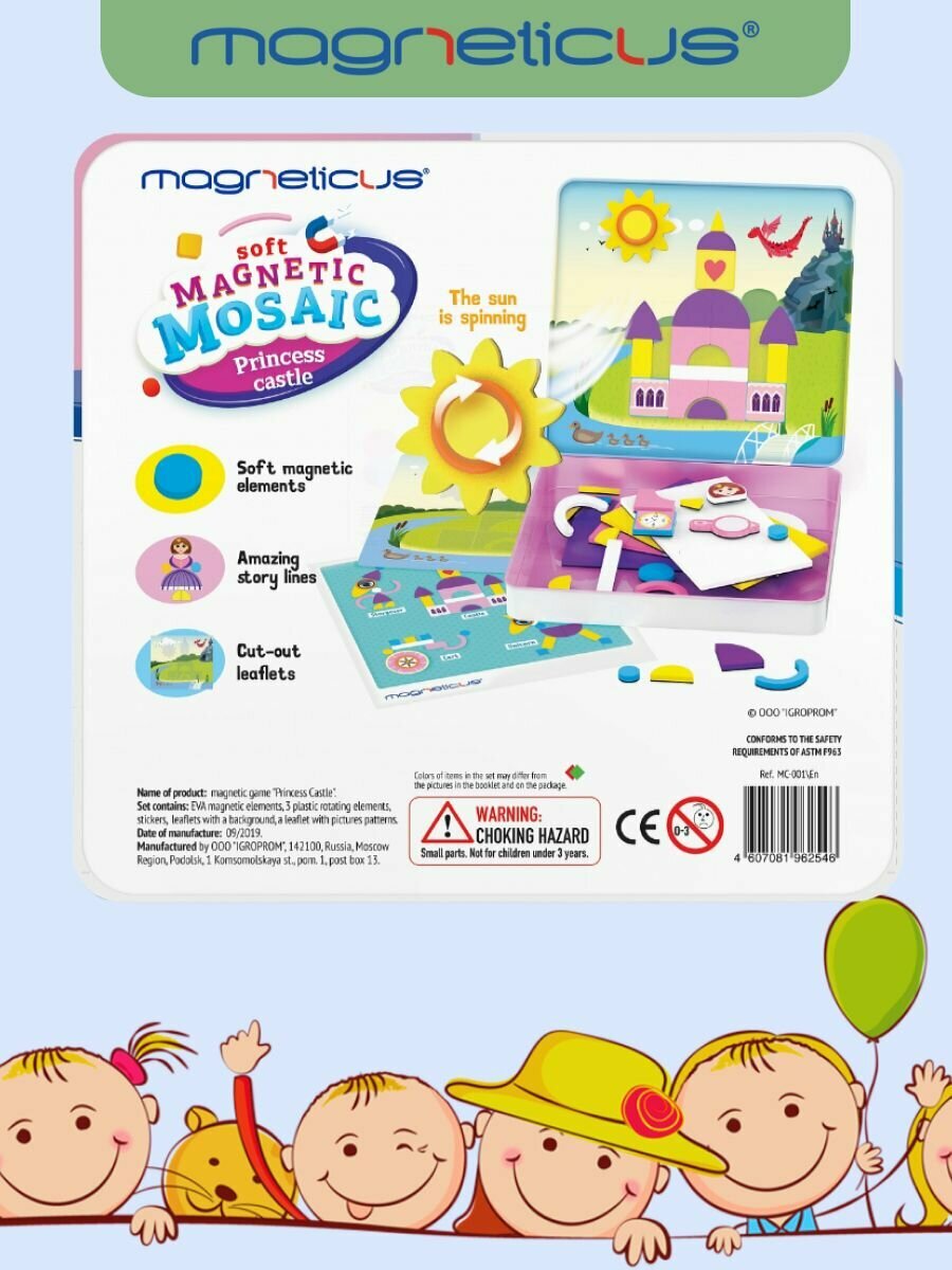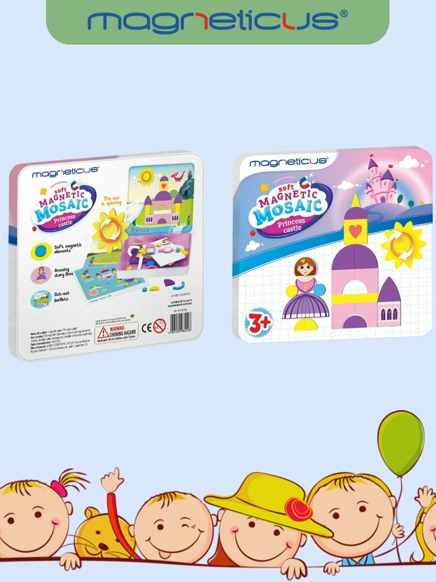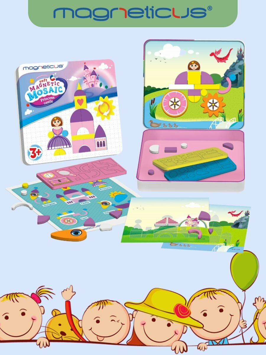 Купить Обучающая магнитная игра-мозаика от Magneticus "Замок принцессы" на английском языке, 47 магнитных элемента, 4 этюда