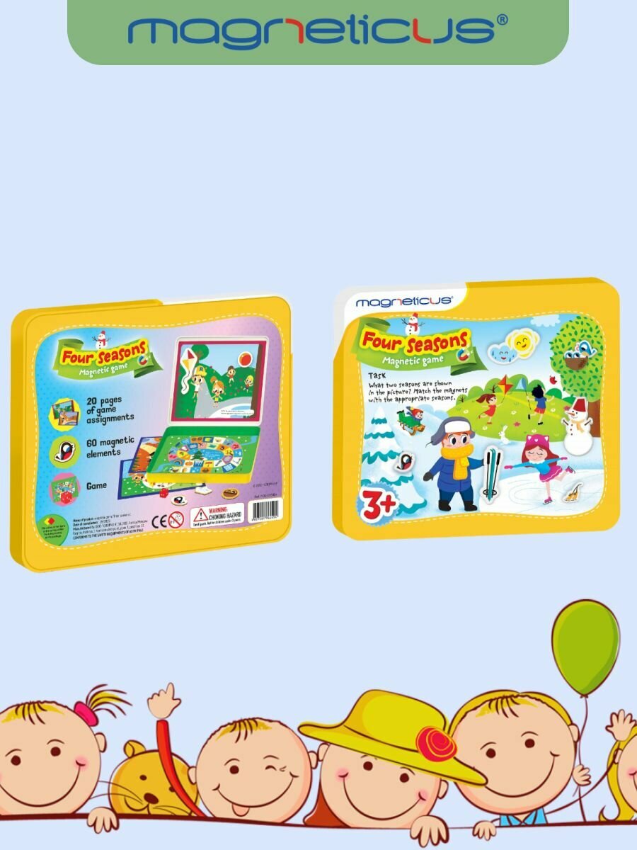 Купить Обучающая магнитная игра-мозаика от Magneticus "Времена года" на английском языке, 60 элементов, 20 заданий, от 3 лет