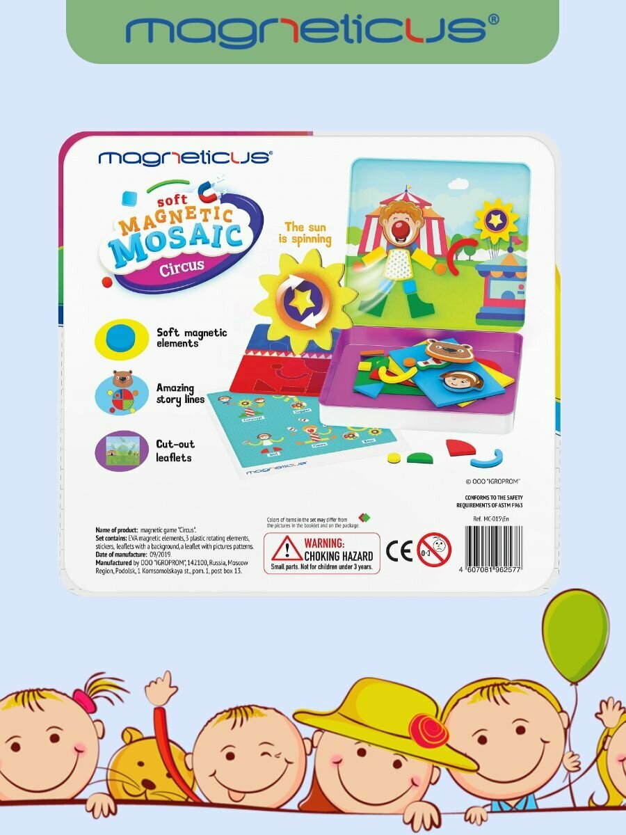 Купить Обучающая магнитная игра-мозаика от Magneticus "Цирк" на английском языке, 59 магнитных элемента