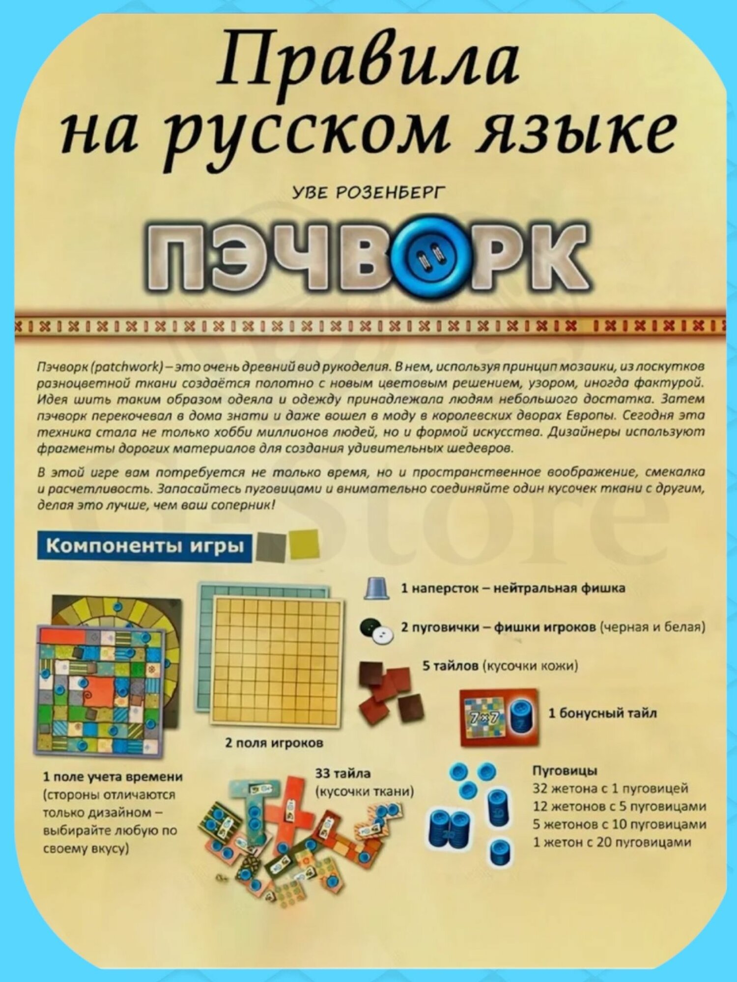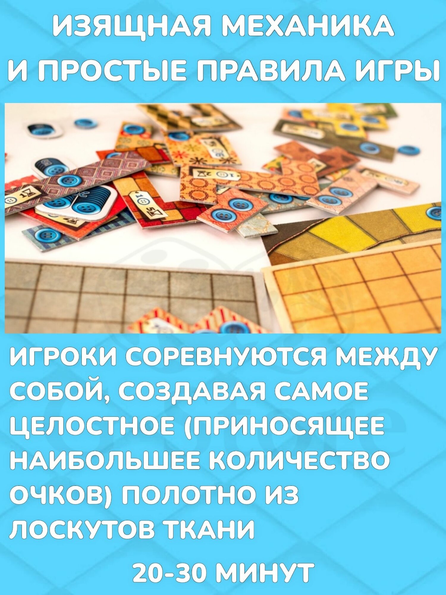 Ниже Вы можете прочитать отзывы на Настольная игра для взрослых и детей Пэчворк, Patchwork, ознакомится с подробными характеристиками, посмотреть интересные обзоры и фотографии на Настольная игра для взрослых и детей Пэчворк, Patchwork.