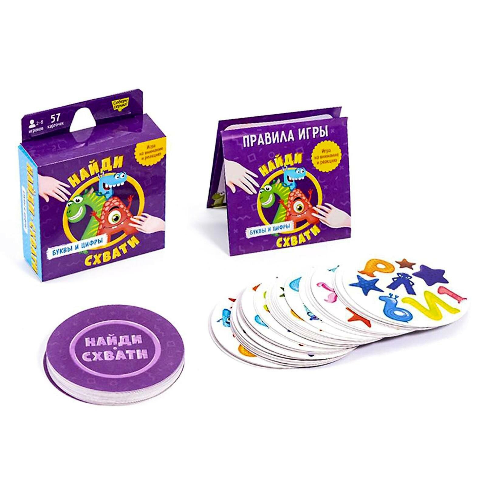Игра карточная. Серия Найди-схвати. Буквы и цифры. 57 карточек. 8,2х8,2 см. интересное: