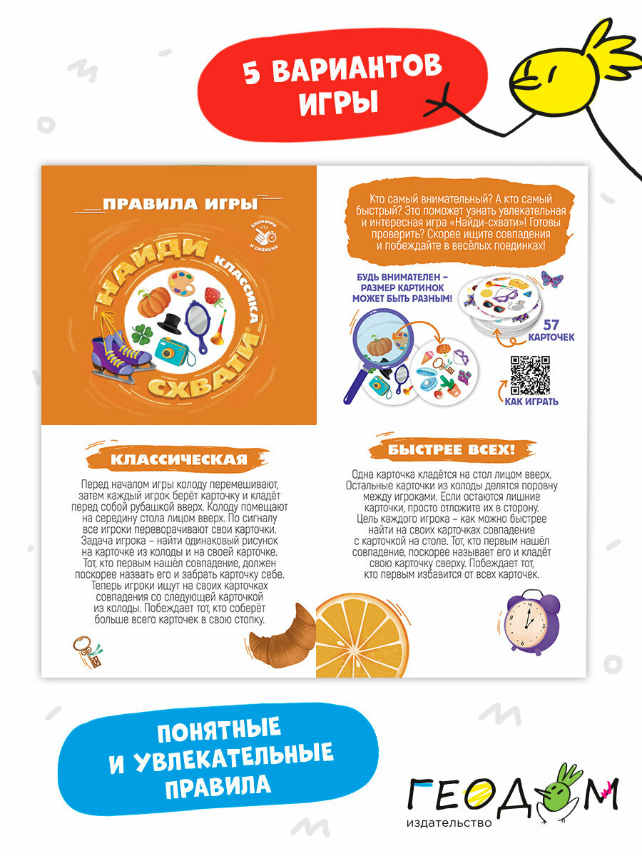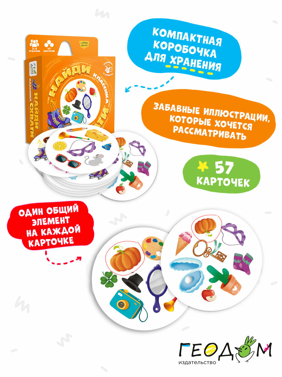 Игра карточная. Серия Найди-схвати. Классика. 57 карточек. 8,2х8,2 см. геодом интересное:
