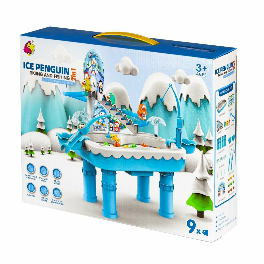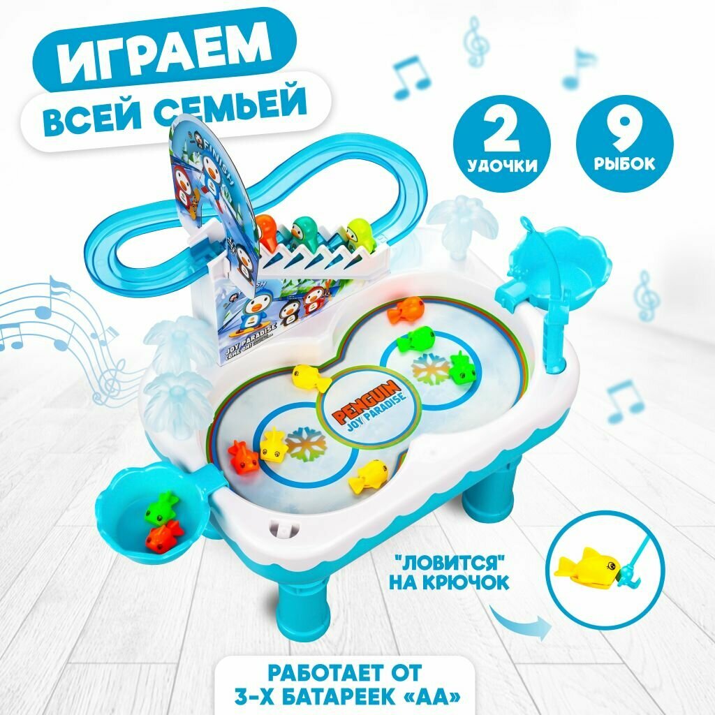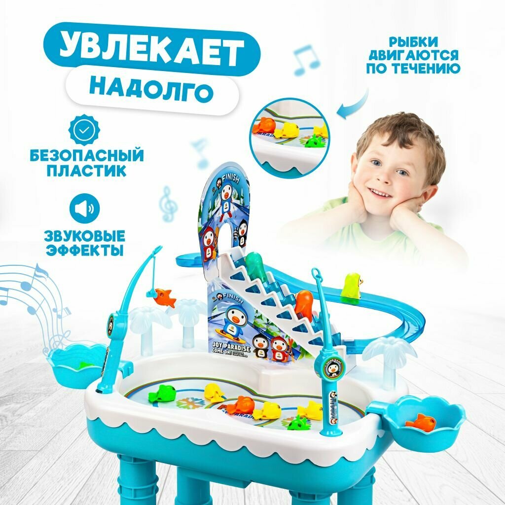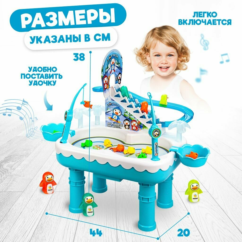 Купить Игра рыбалка магнитная детская, игрушка сортер, со звуковым эффектом веселые пингвины на горке +2 удочки с крючками