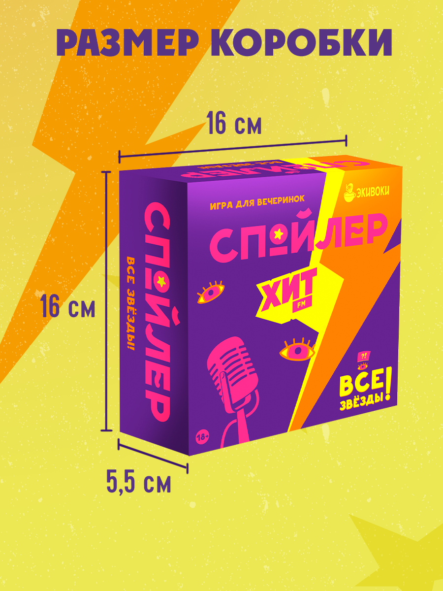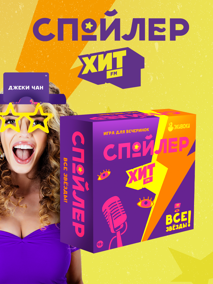 Настольная игра «Спойлер. Все звёзды» от «Экивоки» и Хит FM, от 3 игроков, от 16 лет, «угадай, кто ты», селебрити интересное: