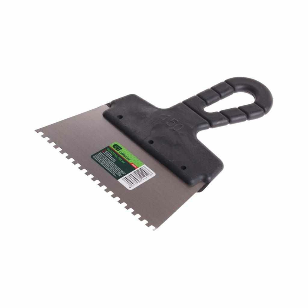Шпатель из нержавеющей стали 150 мм зуб 4х4 мм пластмассовая ручка Сибртех