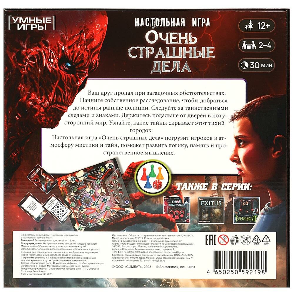 Ниже Вы можете прочитать отзывы на Настольная игра-ходилка Очень страшные дела, 40 карточек Умные игры 4650250592198, ознакомится с подробными характеристиками, посмотреть интересные обзоры и фотографии на Настольная игра-ходилка Очень страшные дела, 40 карточек Умные игры 4650250592198.