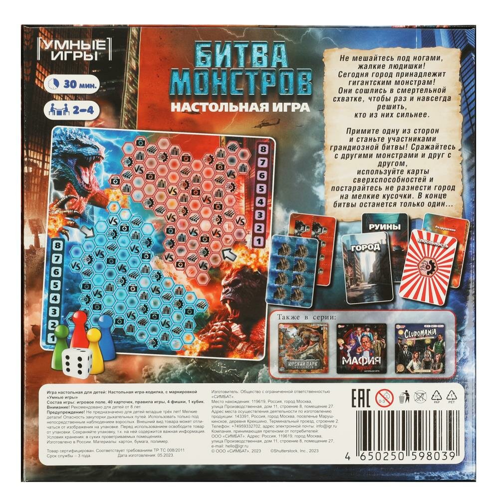 Ниже Вы можете прочитать отзывы на Настольная игра-ходилка Битва монстров, 40 карточек Умные игры 4650250598039 (10), ознакомится с подробными характеристиками, посмотреть интересные обзоры и фотографии на Настольная игра-ходилка Битва монстров, 40 карточек Умные игры 4650250598039 (10).