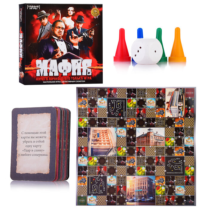 СохранитьМафия. Настольная игра-ходилка квадрат.40 карточек.250х250х55 мм. 4650250597964 интересное: