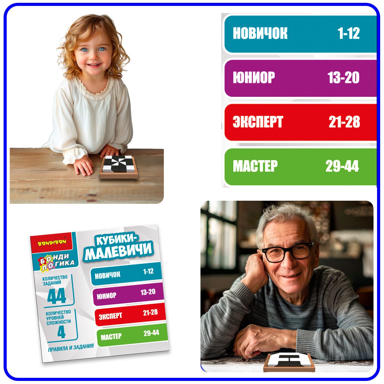 Ниже Вы можете прочитать отзывы на Игра настольная логическая БондиЛогика Bondibon "кубики-малевичи", ознакомится с подробными характеристиками, посмотреть интересные обзоры и фотографии на Игра настольная логическая БондиЛогика Bondibon "кубики-малевичи".