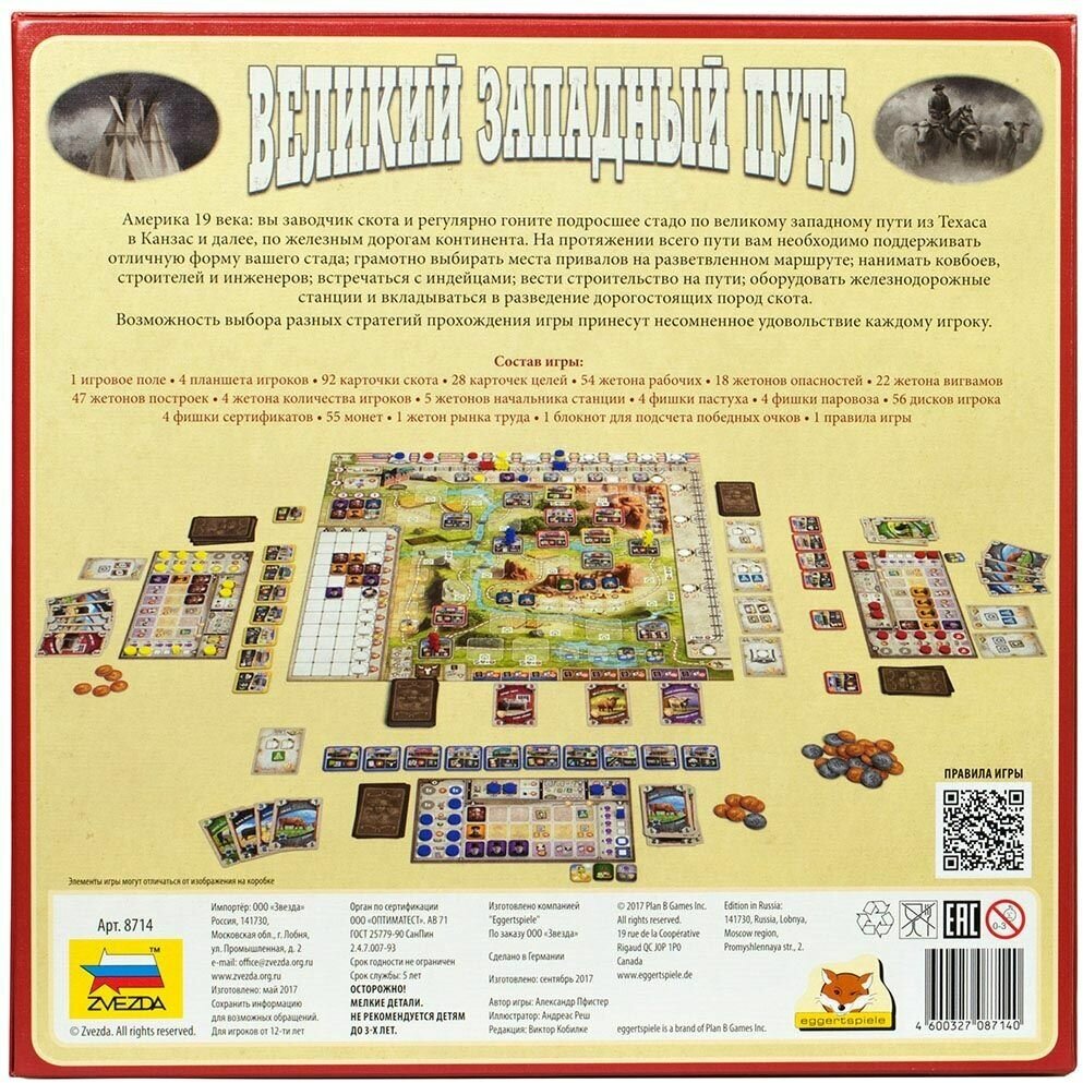 Ниже Вы можете прочитать отзывы на Настольная игра Великий Западный путь (1е издание), ознакомится с подробными характеристиками, посмотреть интересные обзоры и фотографии на Настольная игра Великий Западный путь (1е издание).