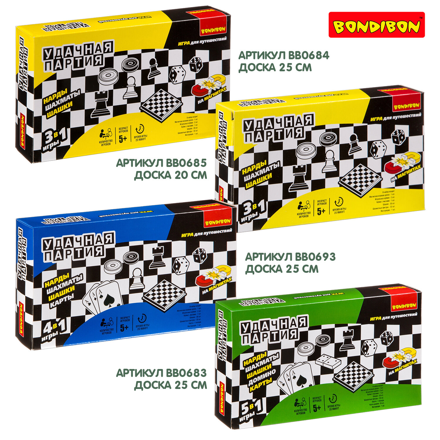 Ниже Вы можете прочитать отзывы на Набор настольных игр Bondibon "Удачная партия", 5в1: нарды, шашки, шахматы, карты, домино, ознакомится с подробными характеристиками, посмотреть интересные обзоры и фотографии на Набор настольных игр Bondibon "Удачная партия", 5в1: нарды, шашки, шахматы, карты, домино.