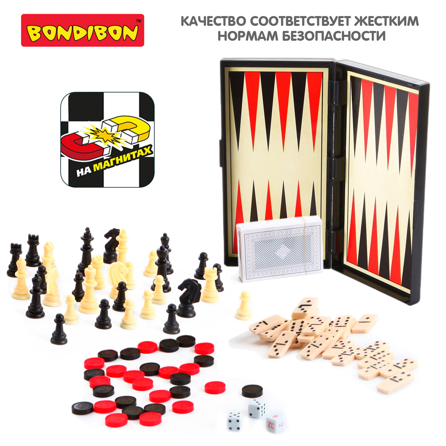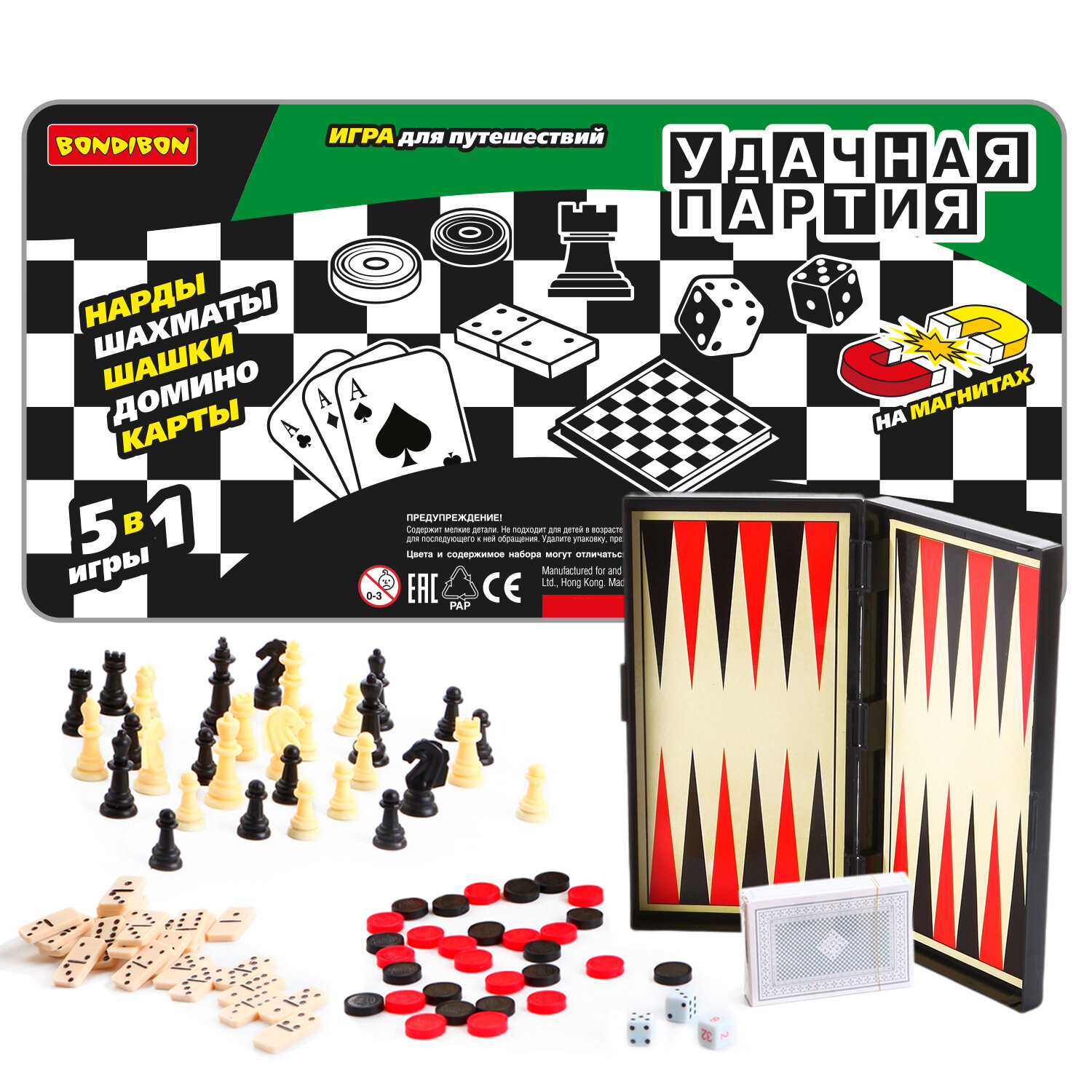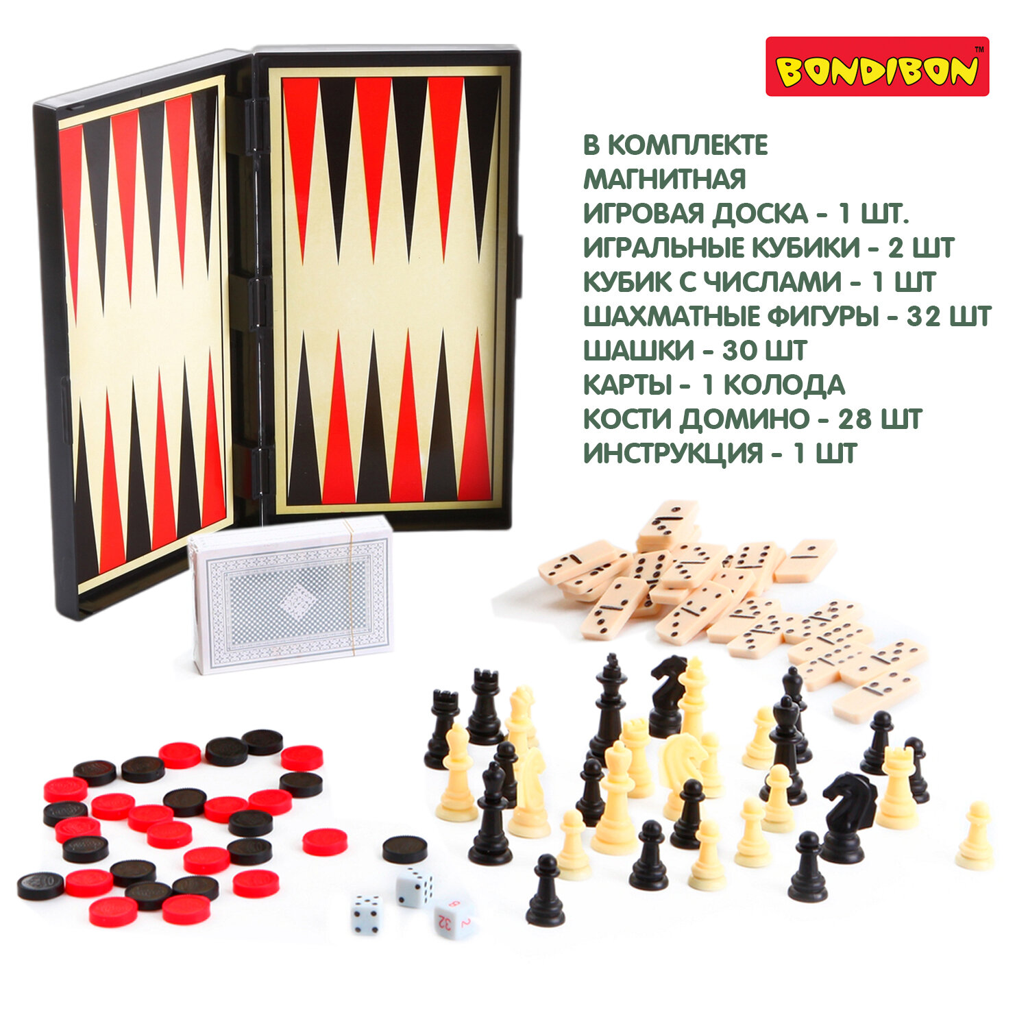 Набор настольных игр Bondibon "Удачная партия", 5в1: нарды, шашки, шахматы, карты, домино интересное: