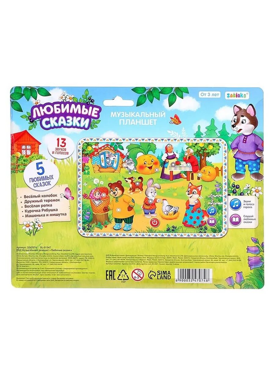 Музыкальный планшет «Однажды в сказке», 13 звуков и голосов, интересное: