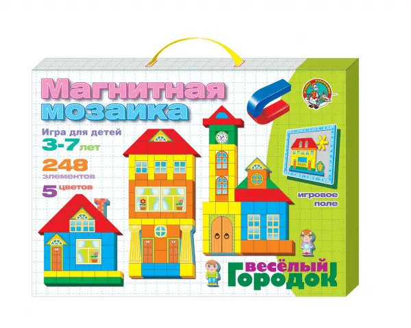 Мозаика магнитная. Веселый городок (5 цветов, 220 магнитных фишек, 30 дополнительных элементов) интересное: