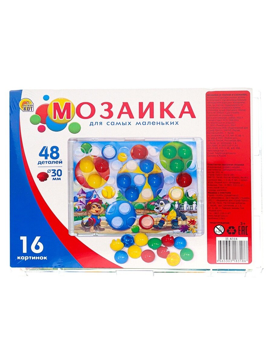 Мозаика Рыжий кот 48 деталей, на подставке со схемами, 16 картинок, игровое поле 28х21,5 см И-8318 интересное: