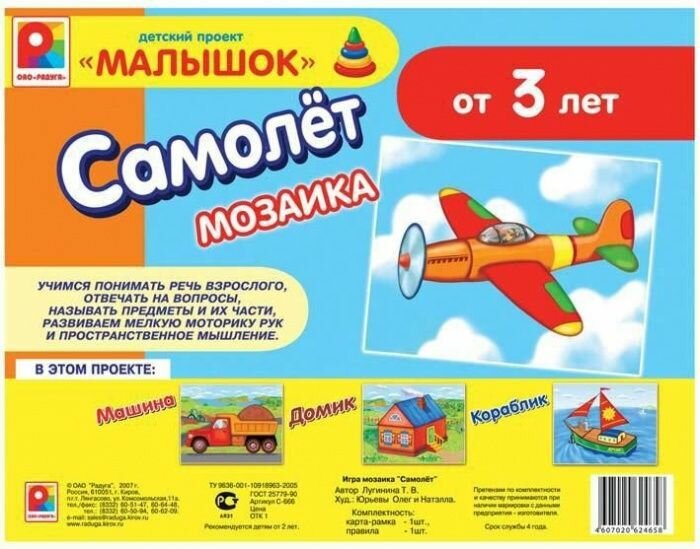 Ниже Вы можете прочитать отзывы на Мозаика Радуга "Самолёт", картонная, разноцветная, для развития моторики, от 2 лет, ознакомится с подробными характеристиками, посмотреть интересные обзоры и фотографии на Мозаика Радуга "Самолёт", картонная, разноцветная, для развития моторики, от 2 лет.
