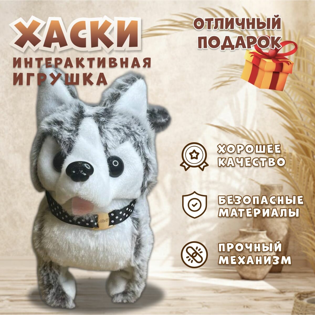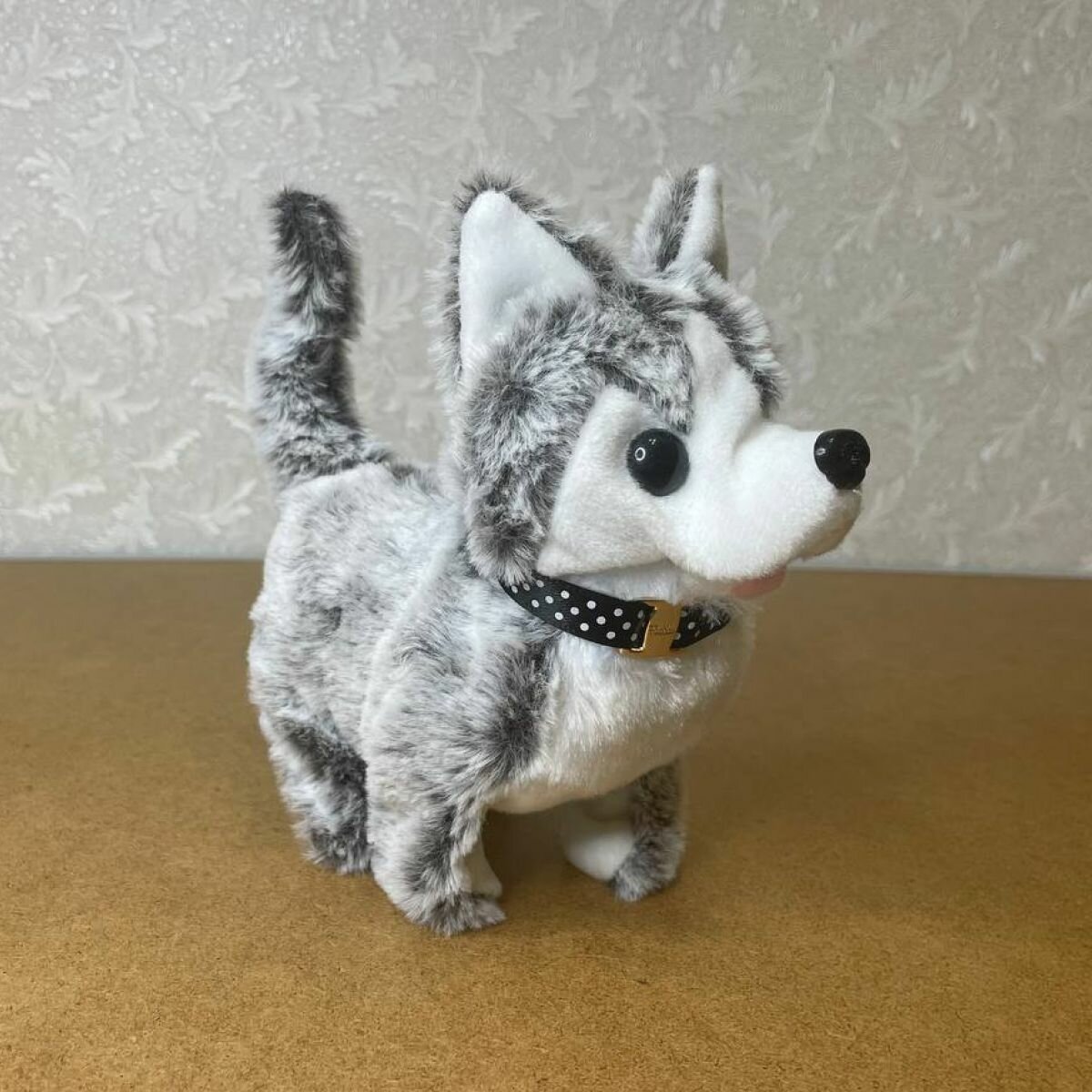 Интерактивная игрушка собака Хаски для детей, двигающийся волк на батарейках плюшевый, серый интересное: