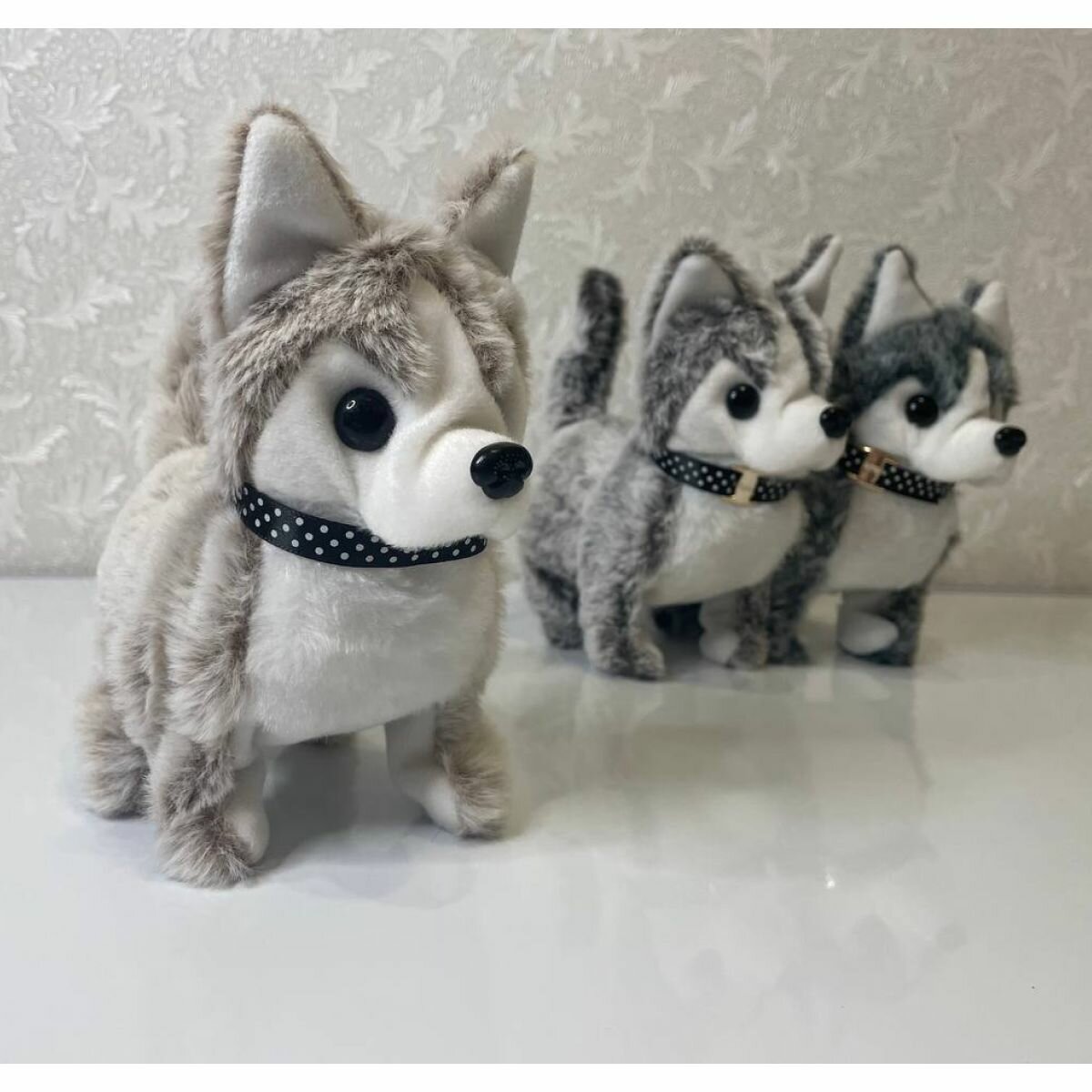 Интерактивная игрушка собака Хаски для детей, двигающийся волк на батарейках плюшевый, серый