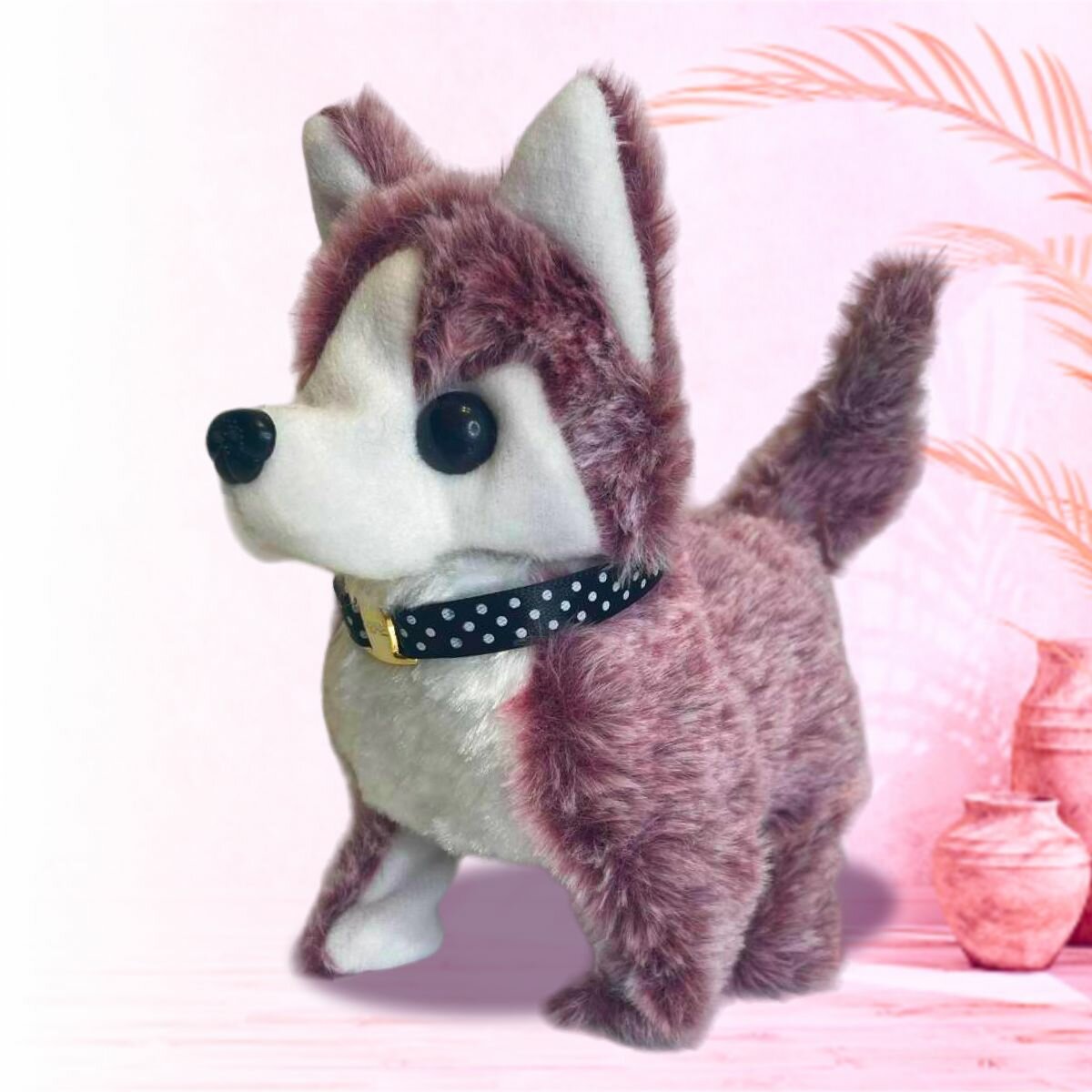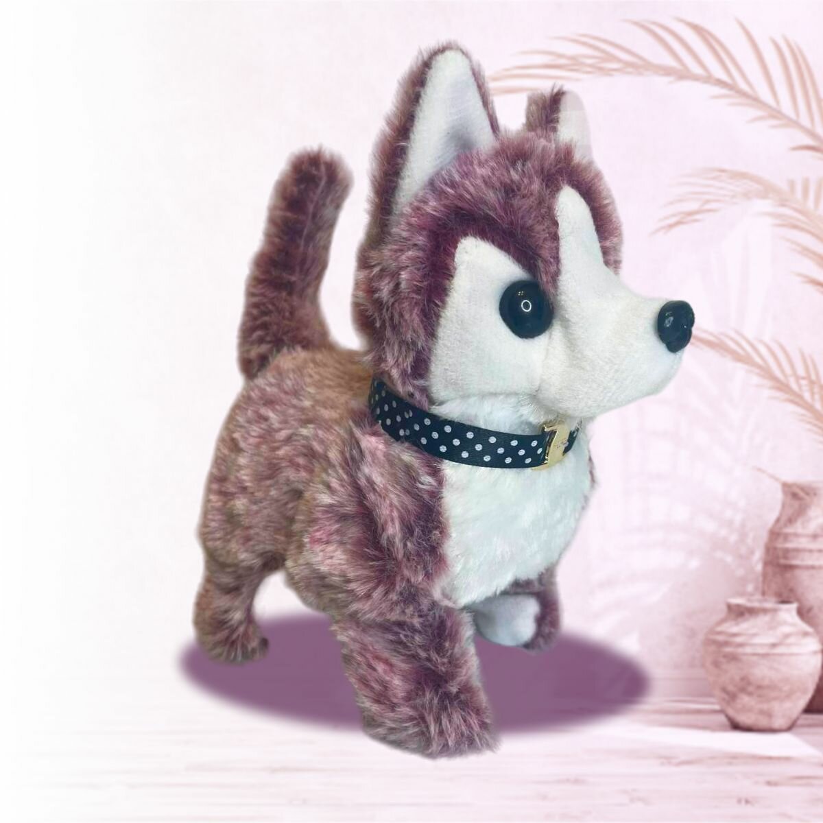 Купить Интерактивная игрушка собака Хаски для детей, двигающийся волк на батарейках плюшевый, малиновый