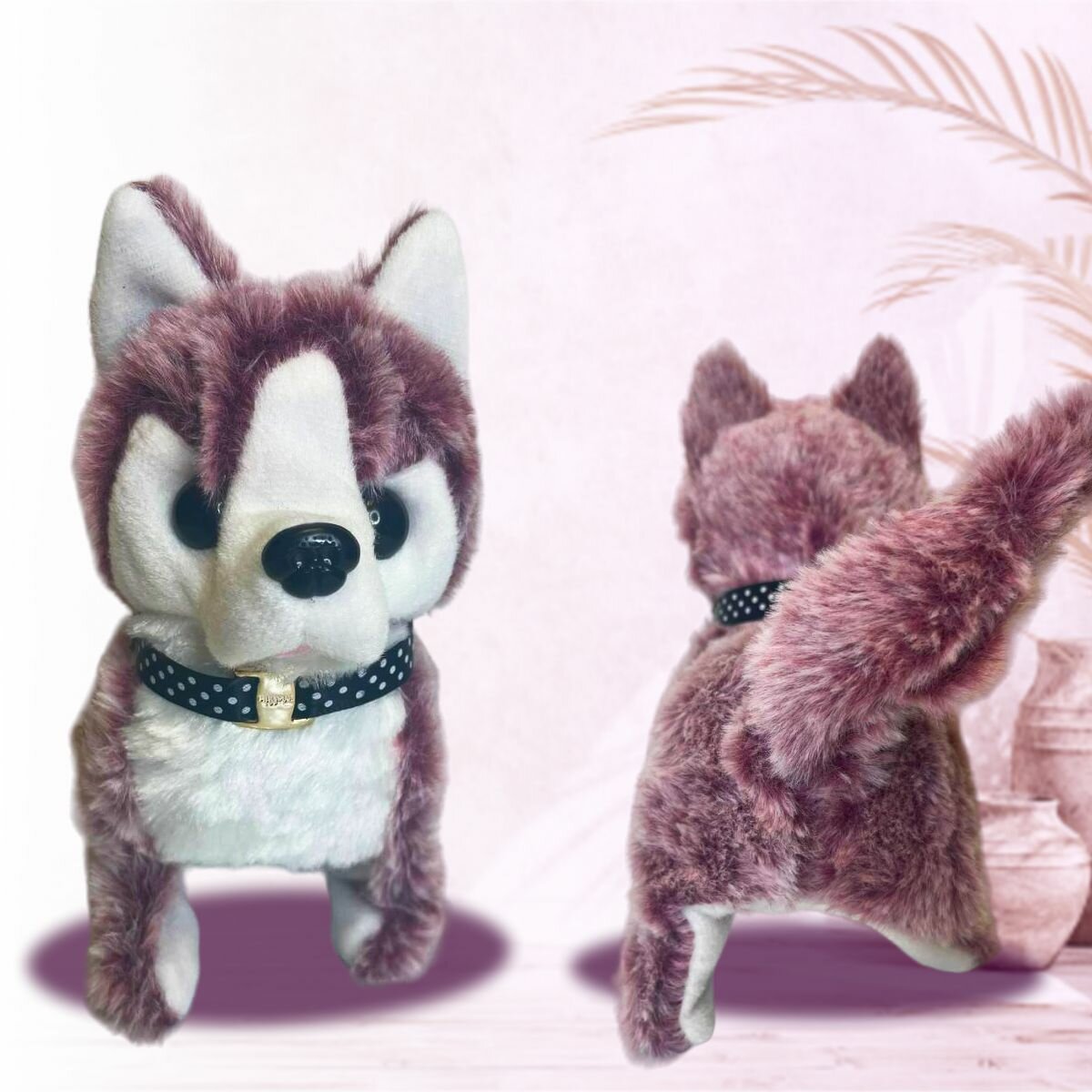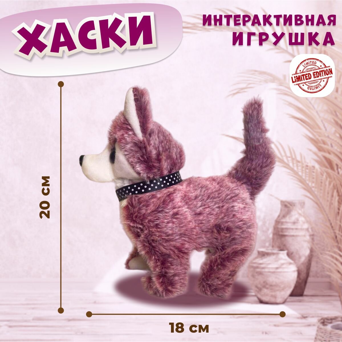 Интерактивная игрушка собака Хаски для детей, двигающийся волк на батарейках плюшевый, малиновый интересное: