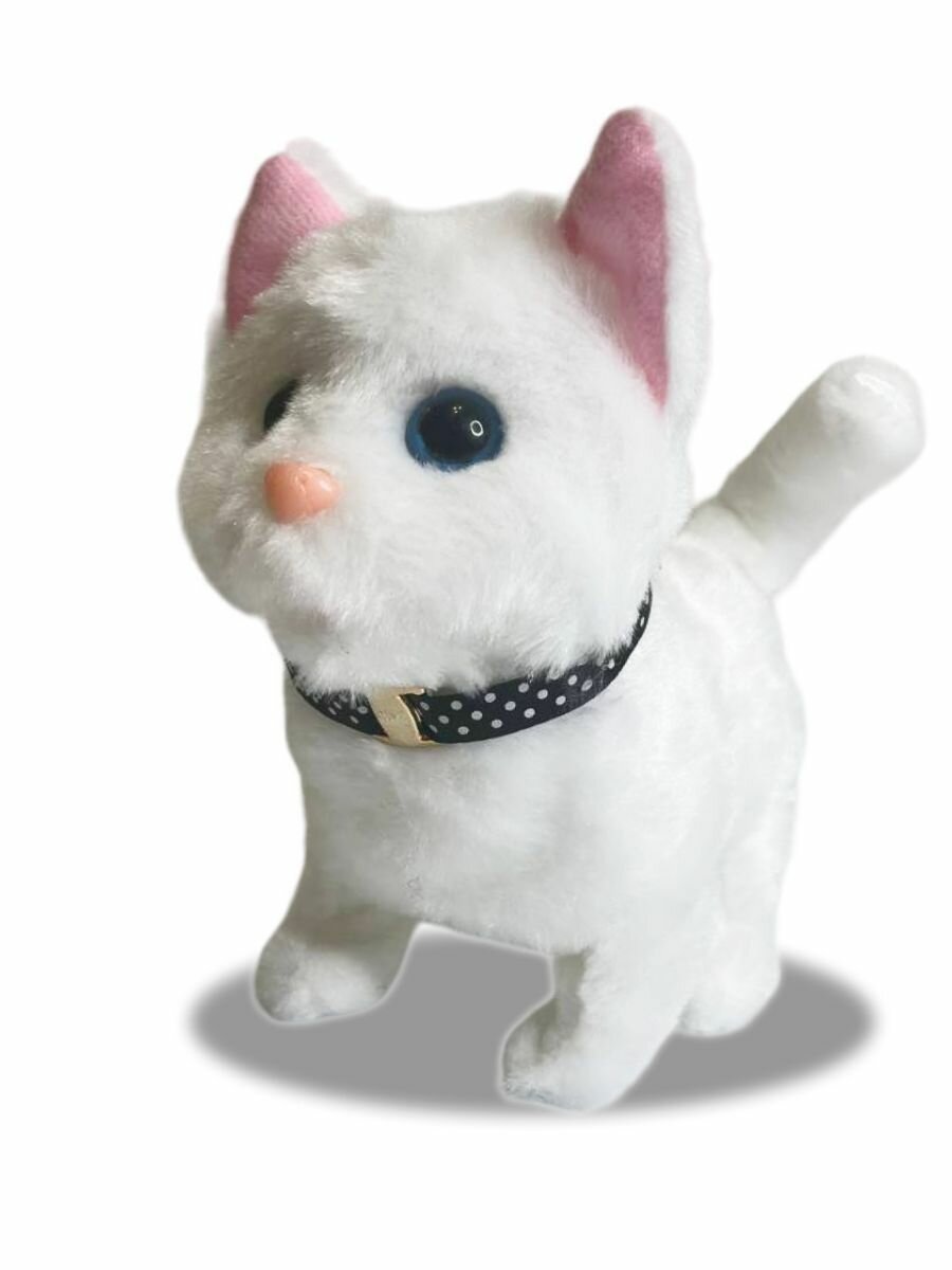 Интерактивная игрушка Кошка для детей, мяукающий котенок на батарейках плюшевый, белый