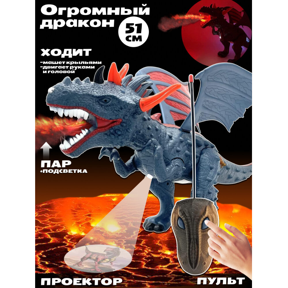 Купить Динозавр на пульте управления, с паром, проектором, светом, звуковыми эффектами, 51 х 14 х 29,5 см, 60154