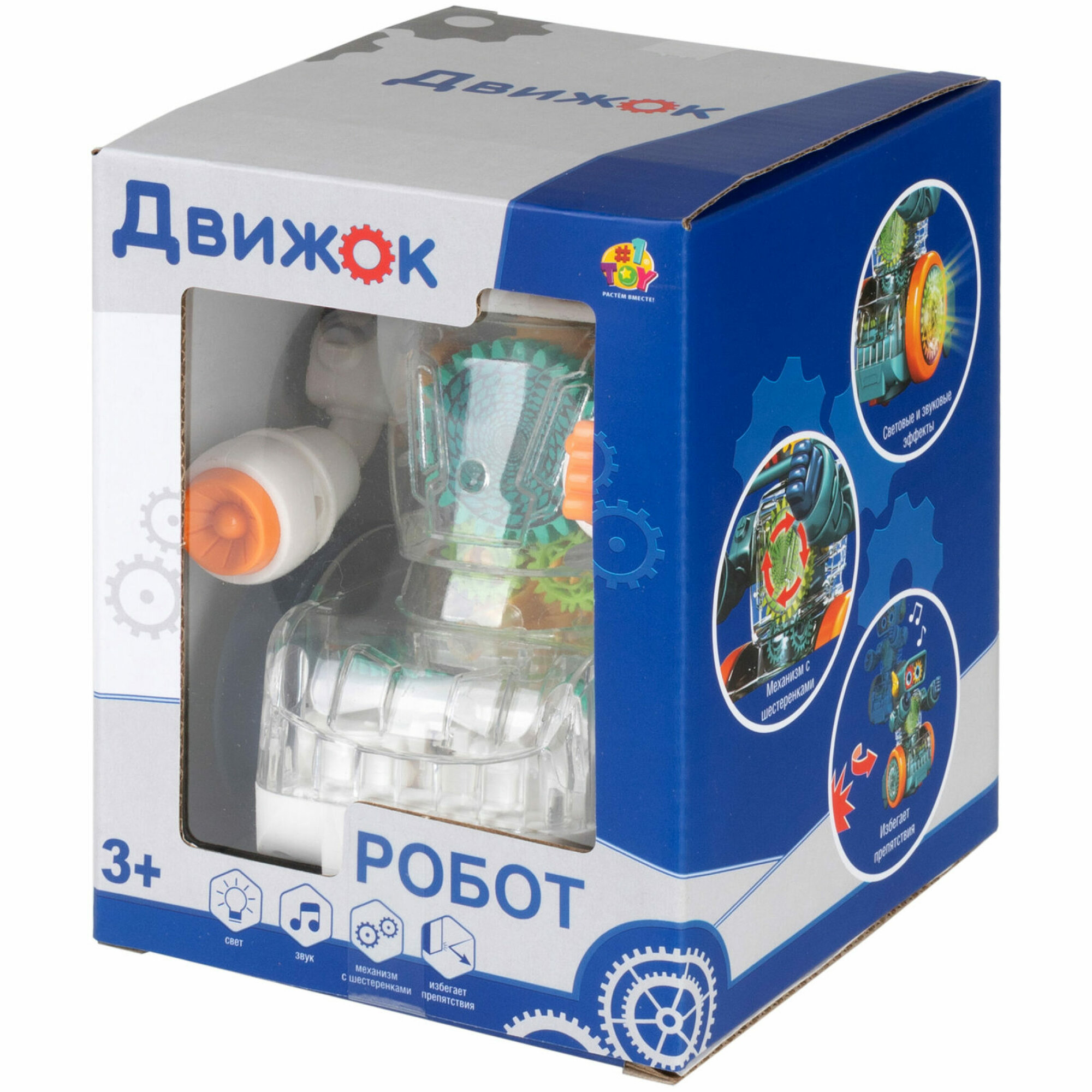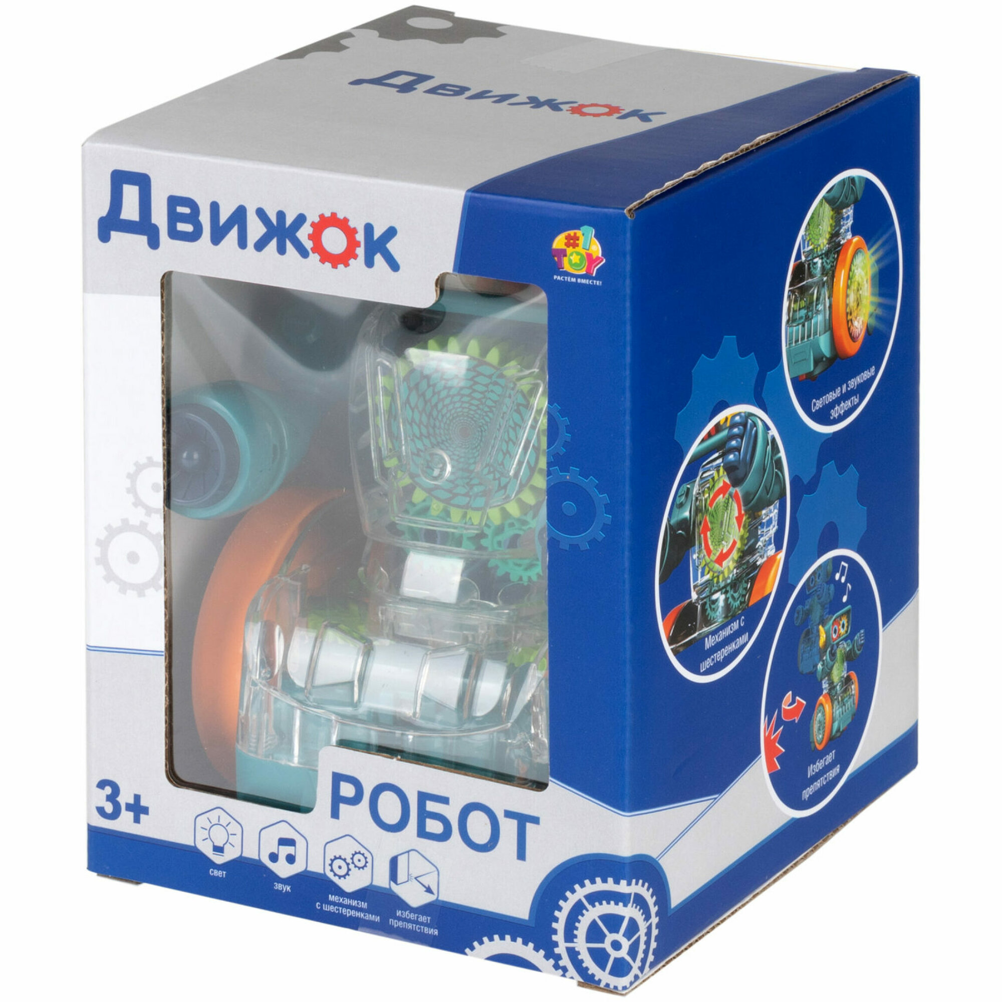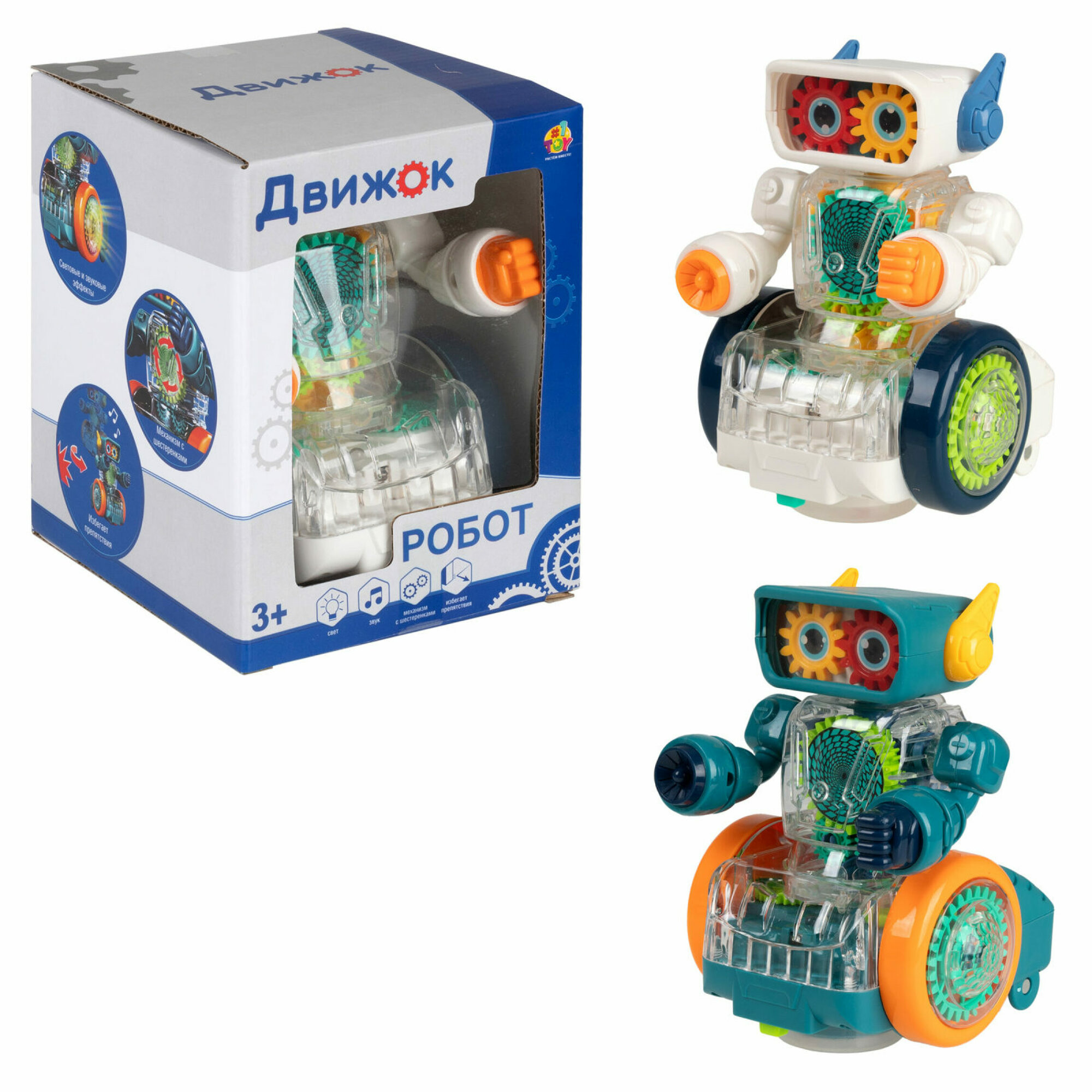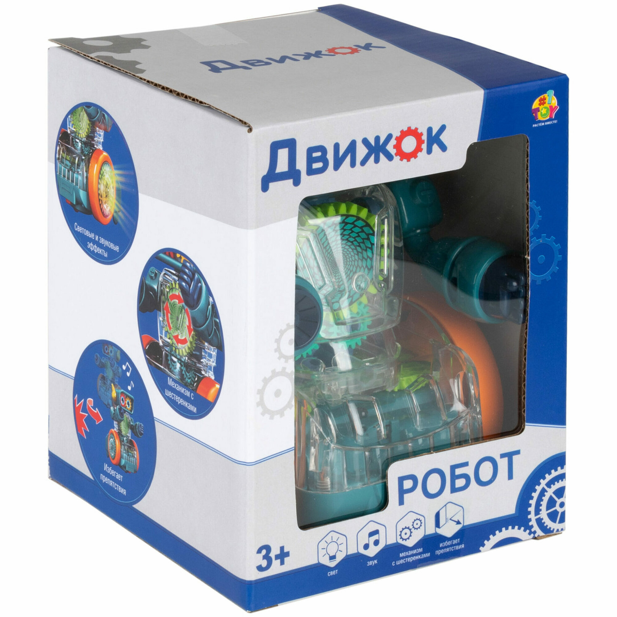 Купить Игрушка прозрачная с шестеренками 1TOY Движок «Робот», со светом и звуком, 1 шт. в ассортименте 1шт