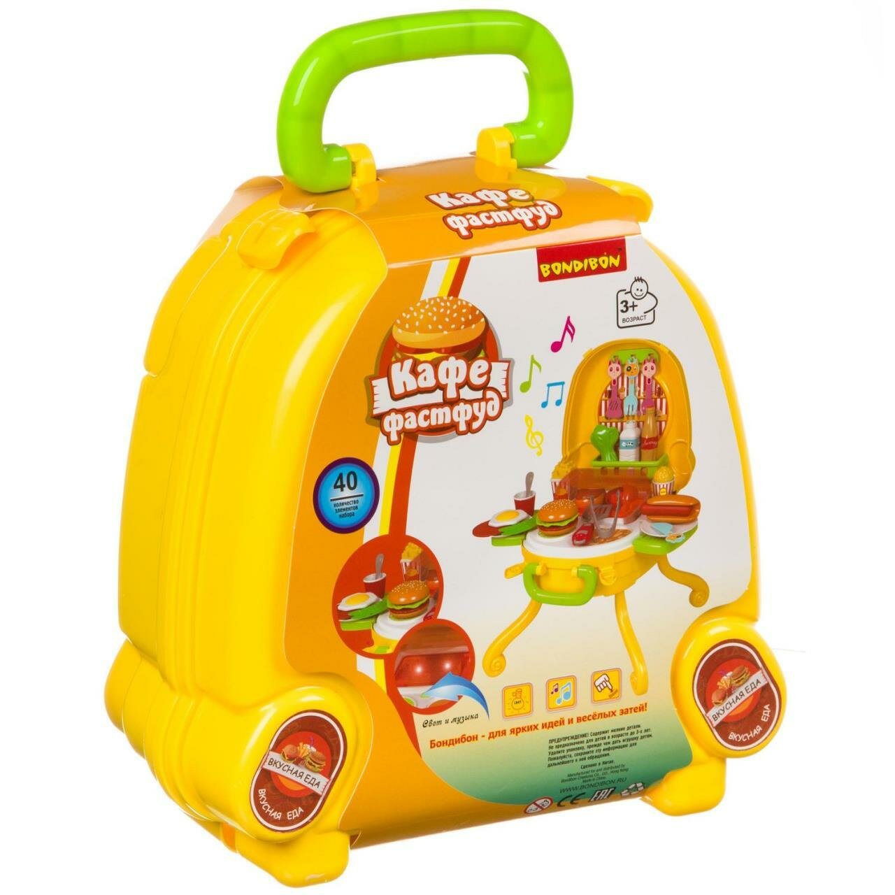 Купить Набор игровой в чемоданчике 32х29х40 см, 40 дет, со светом и звуком, Bondibon, кафе фастфуд, арт.