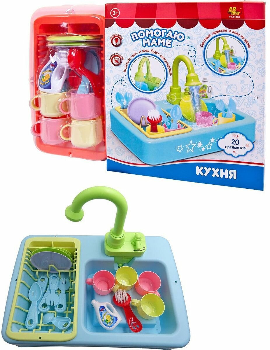 Сюжетно-ролевые игрушки ABtoys Помогаю Маме Кухонная раковина с водой и аксессуарами, PT-01104 интересное: