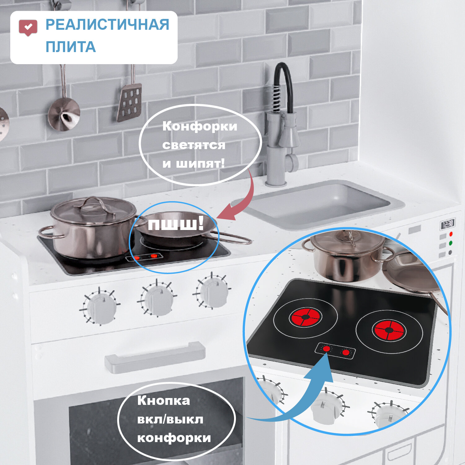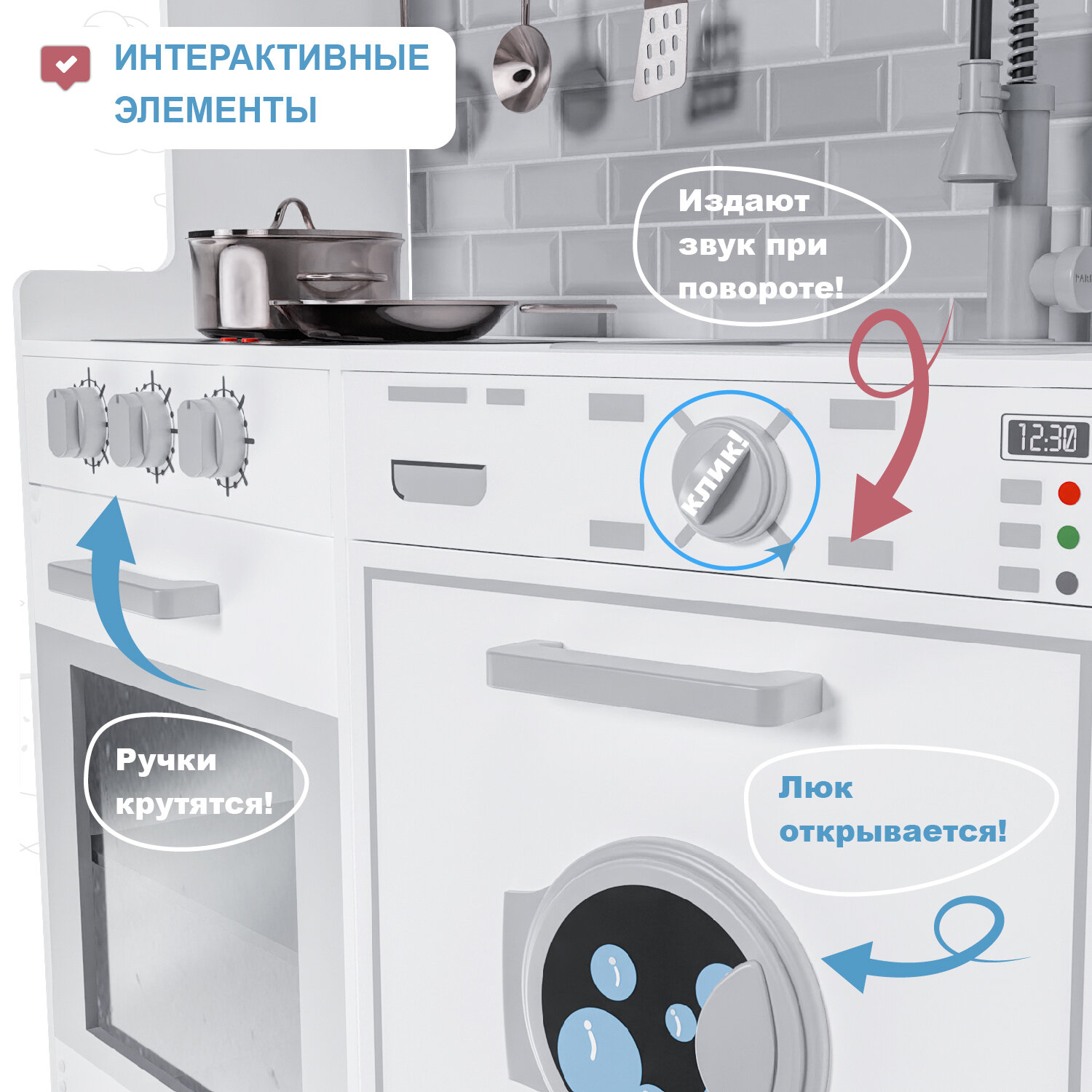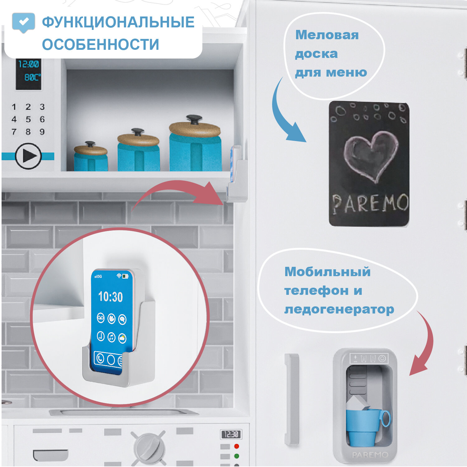 Детская деревянная игровая кухня PAREMO "Феста Бьянка", свет, звук, 10 предметов в наборе PK222-395 интересное: