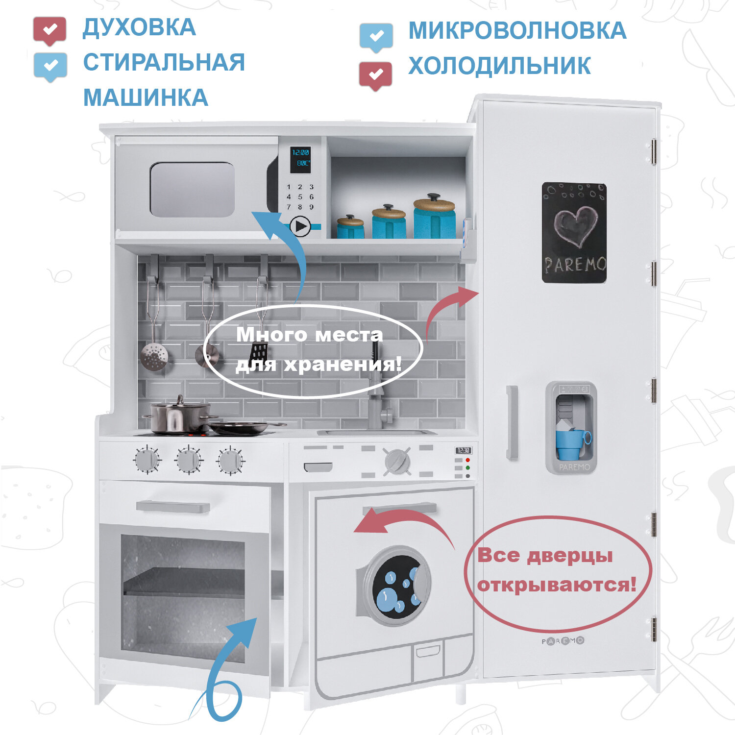 Купить Детская деревянная игровая кухня PAREMO "Феста Бьянка", свет, звук, 10 предметов в наборе PK222-395